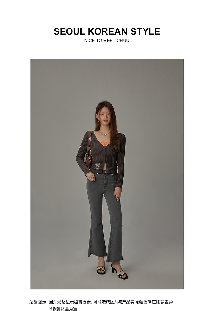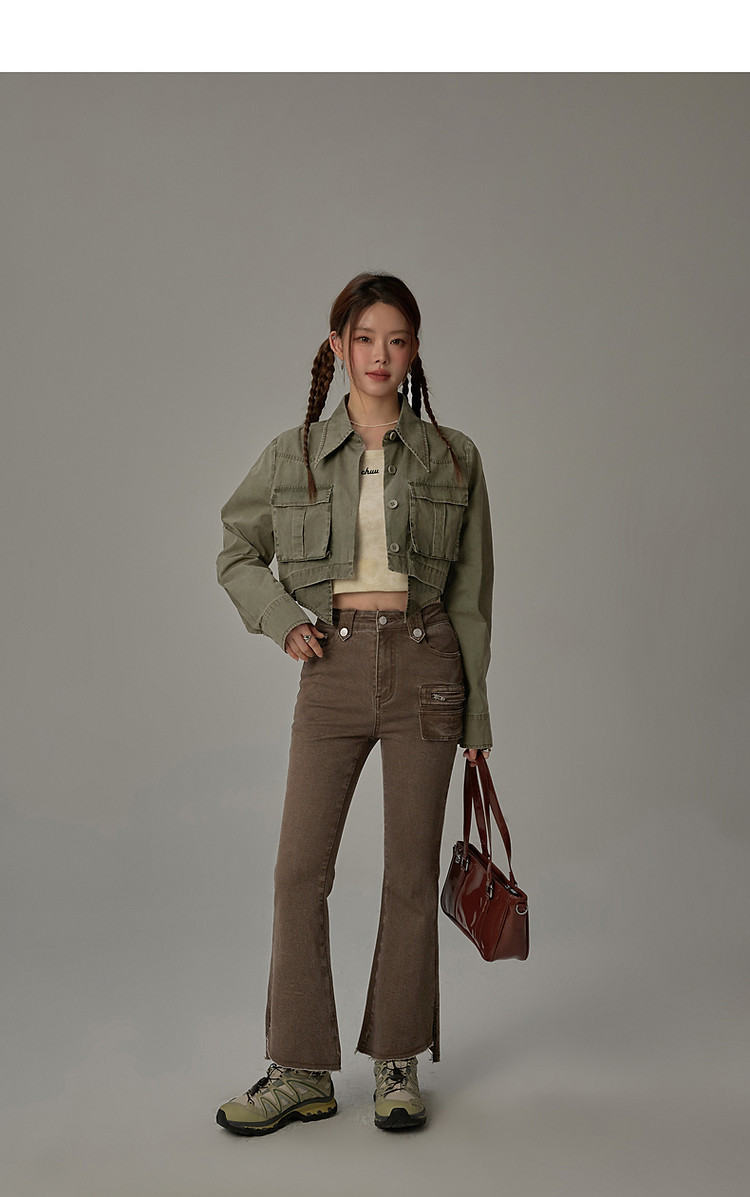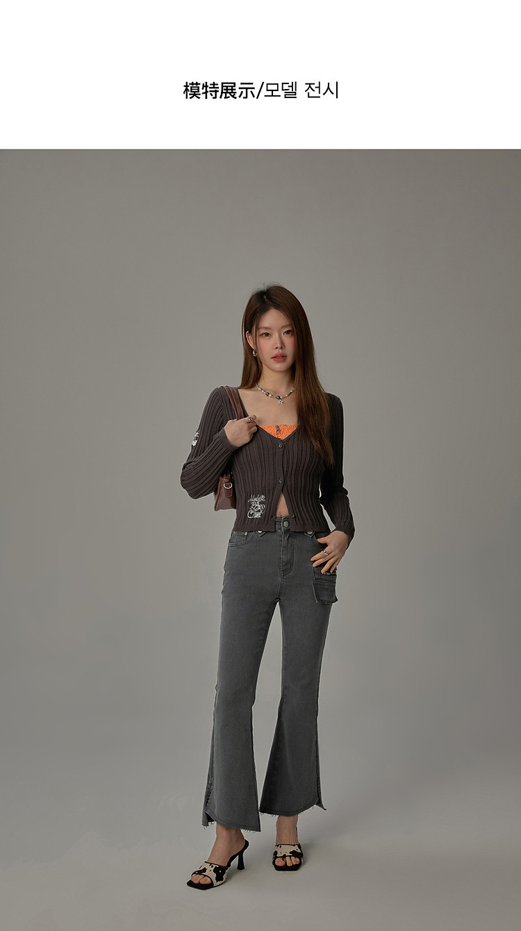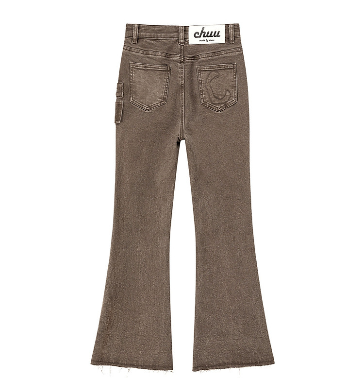 商品名称:开叉微喇牛仔裤女2025夏毛边不对称口袋修身九分裤子 515923