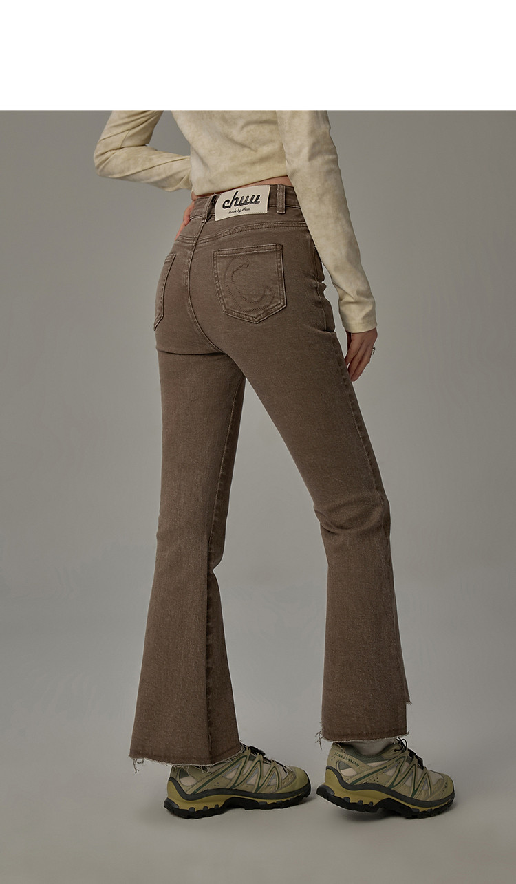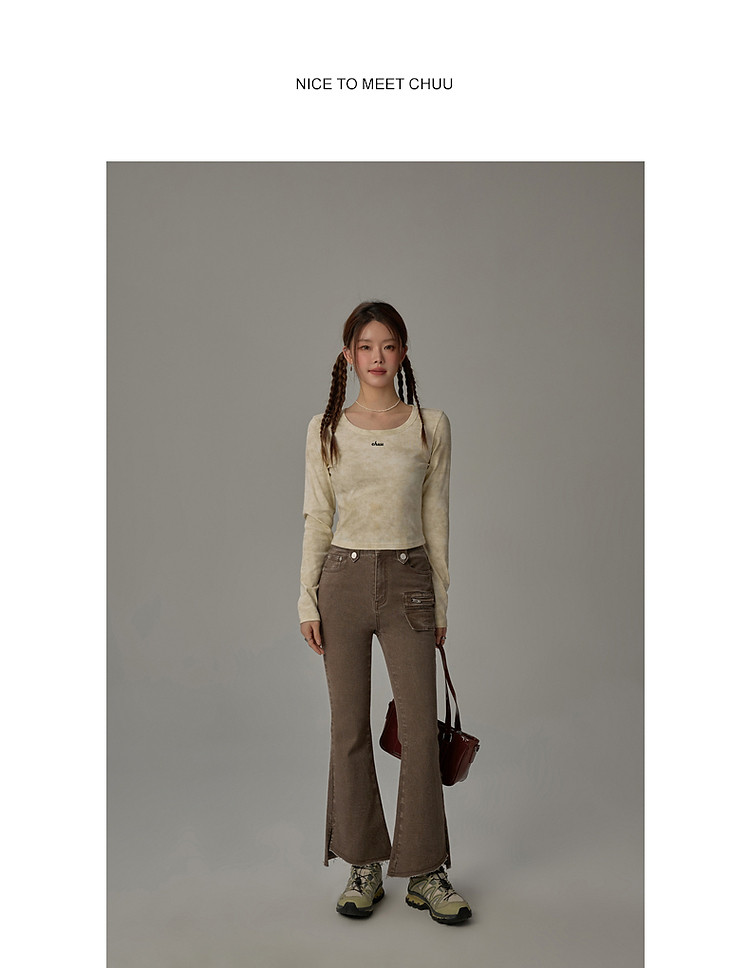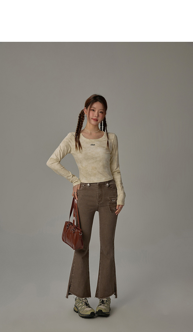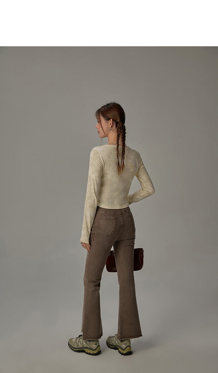 开叉微喇牛仔裤女2025夏毛边不对称口袋修身九分裤子 515923