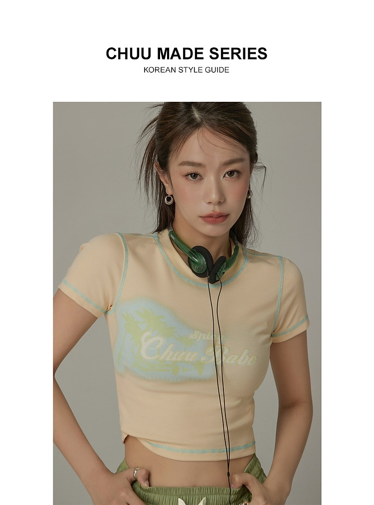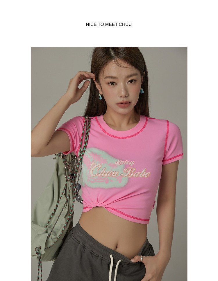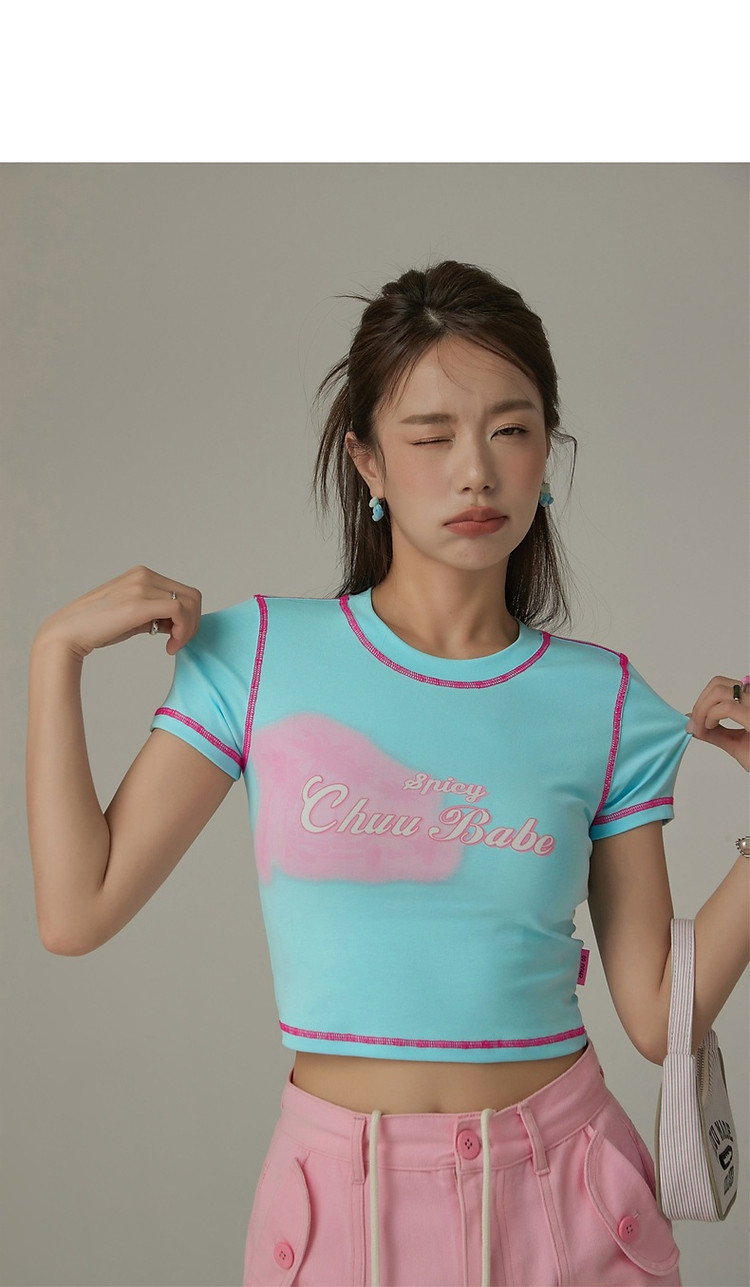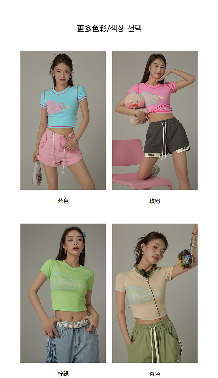 商品名称:甜辣印花T恤女2025春夏短款修身百搭上衣 459795