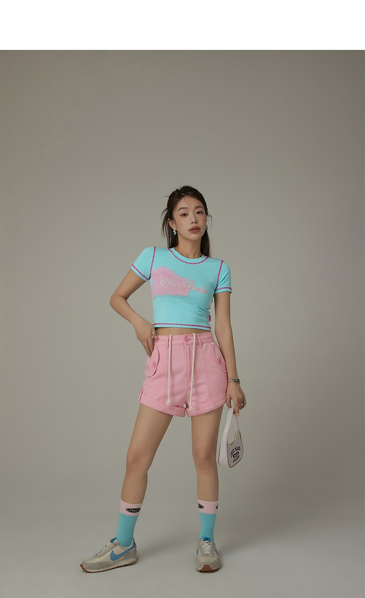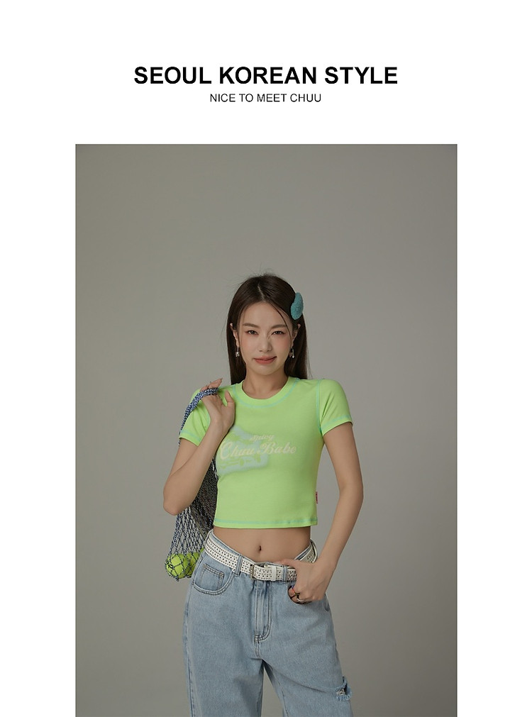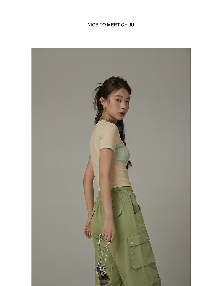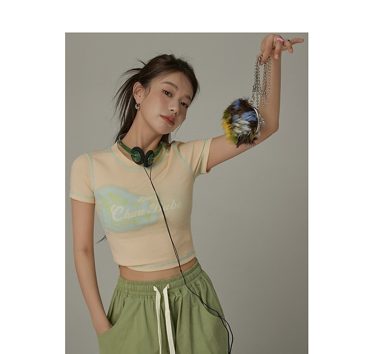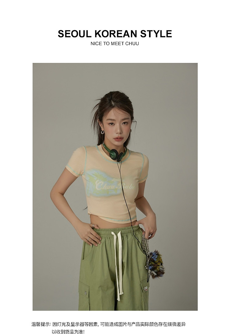 商品名称:甜辣印花T恤女2025春夏短款修身百搭上衣 459795