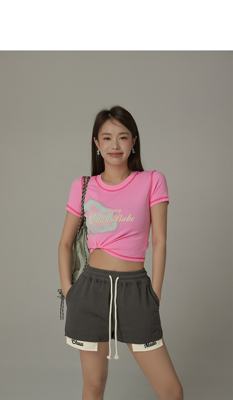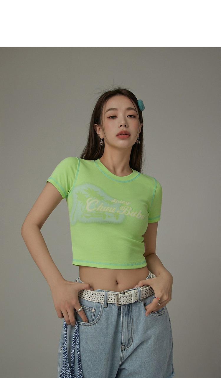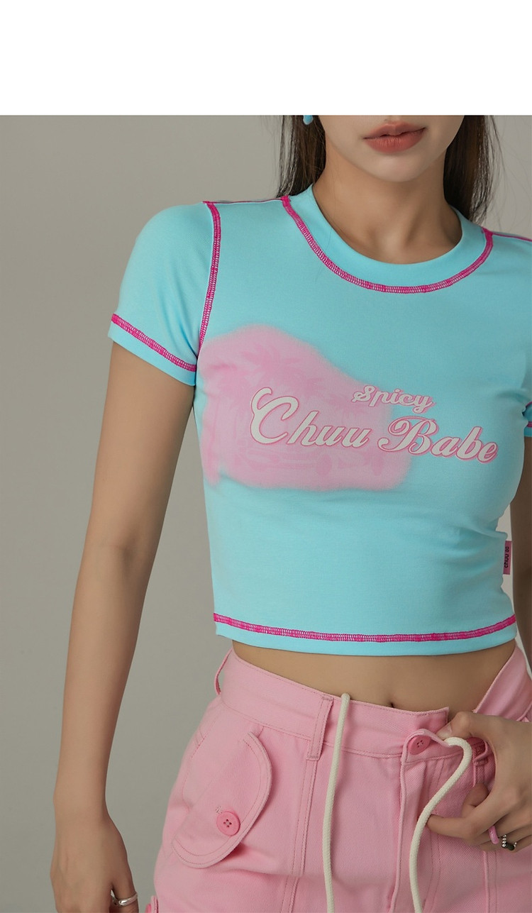 甜辣印花T恤女2025春夏短款修身百搭上衣 459795