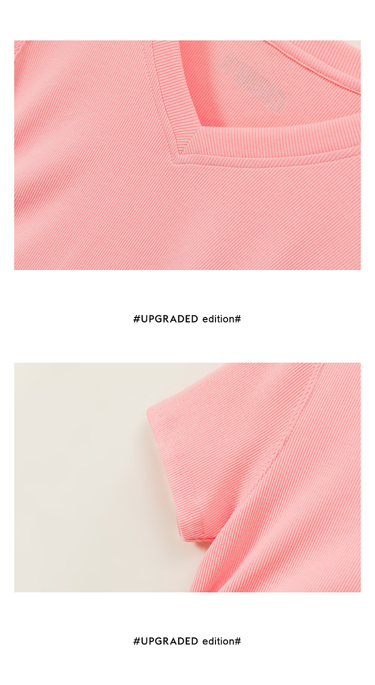 正肩短袖T恤女秋字母镂空系带抽褶V领纯色上衣薄 145491