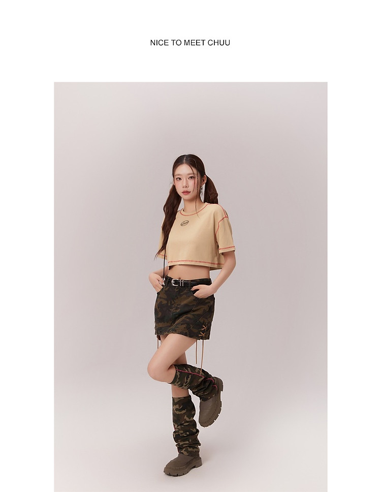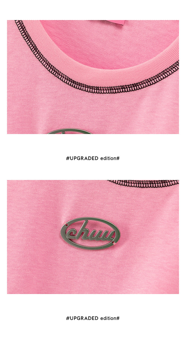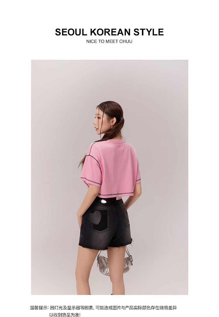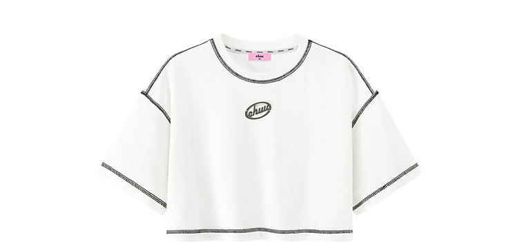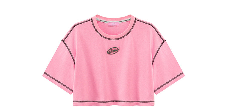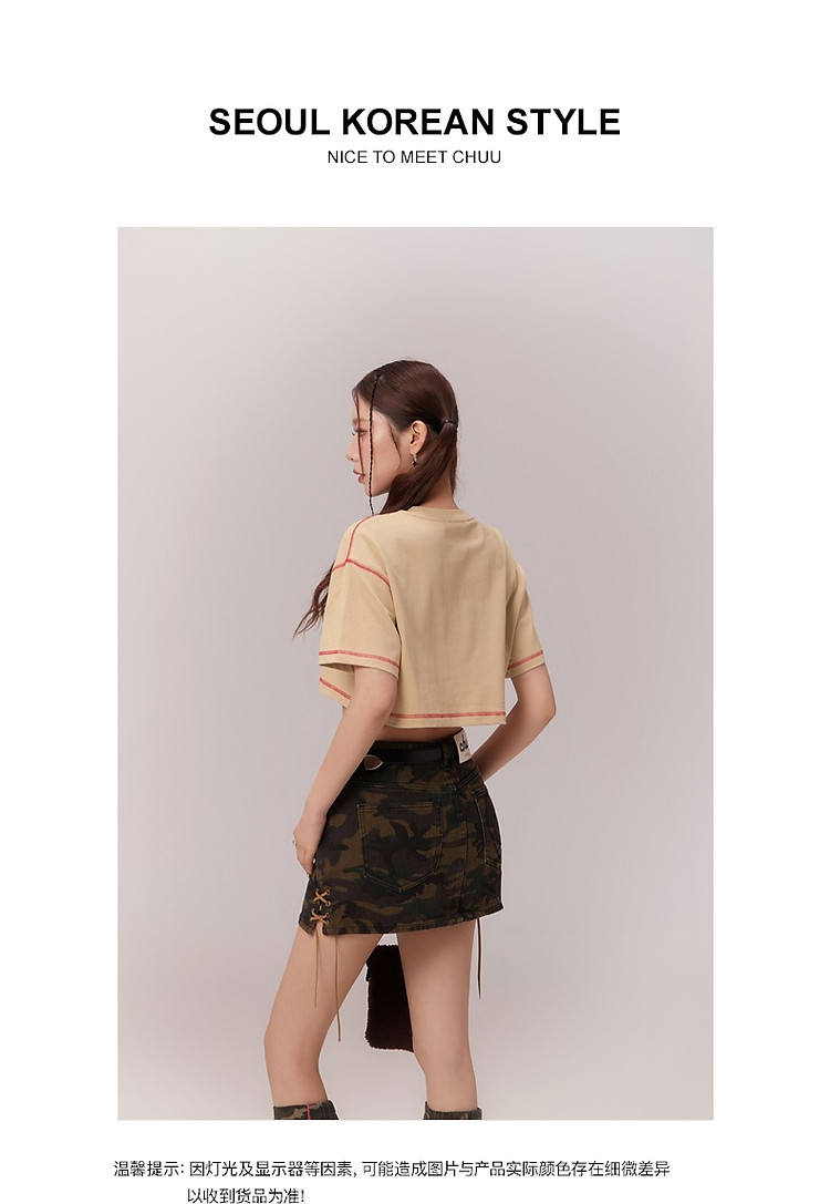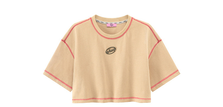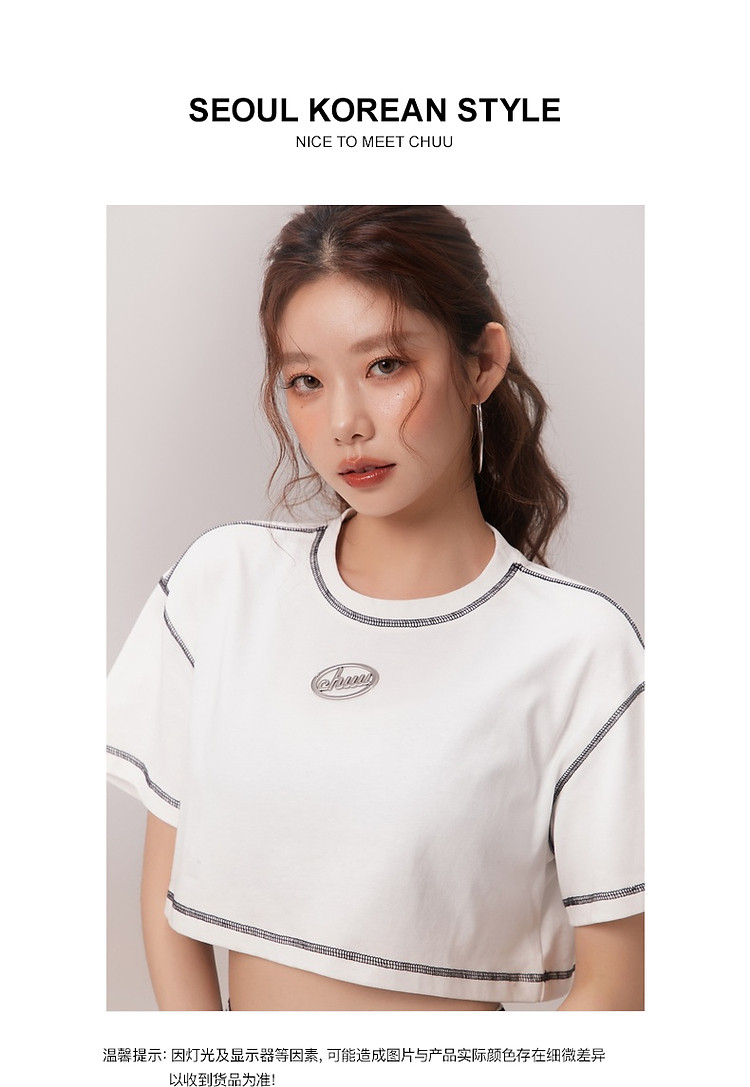 商品名称:明线撞色落肩袖T恤女2025夏基础辣妹宽松露脐短款上衣 922963