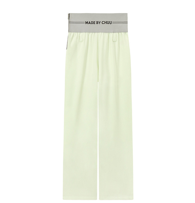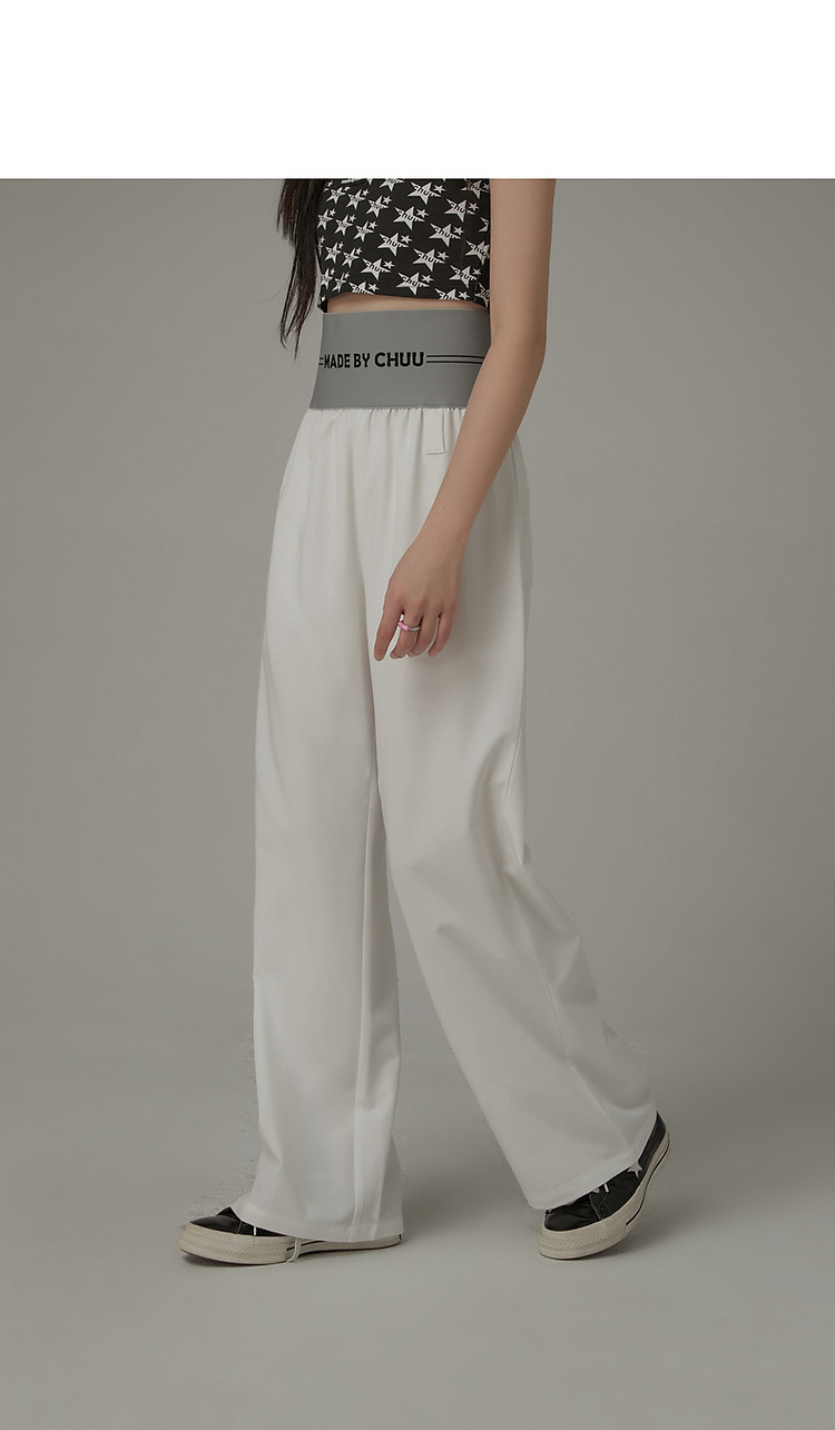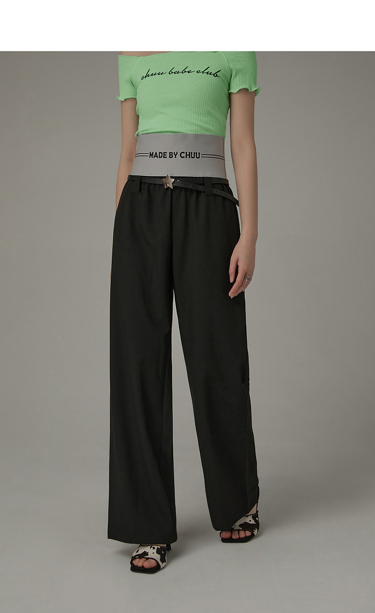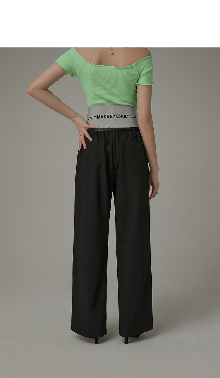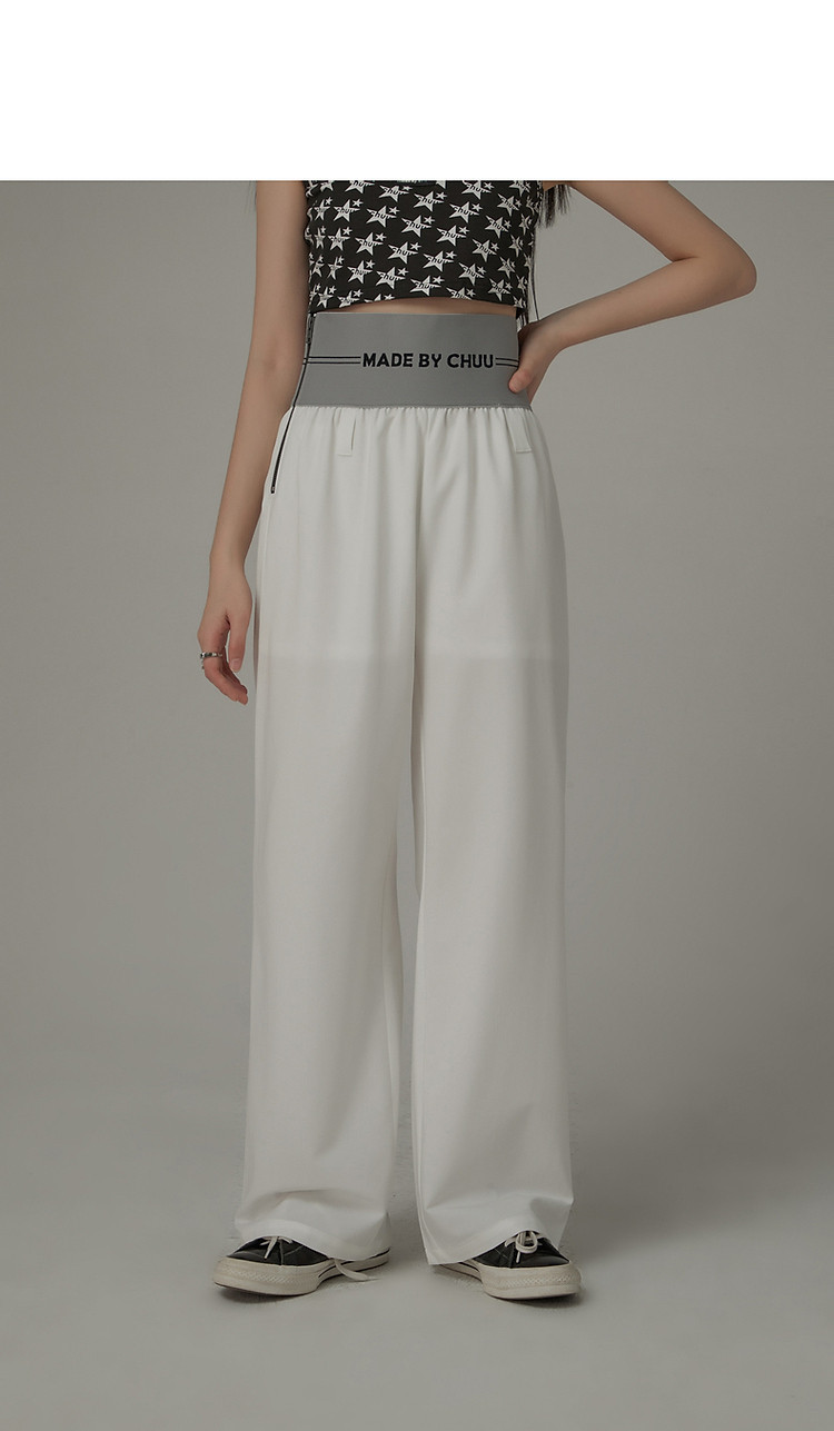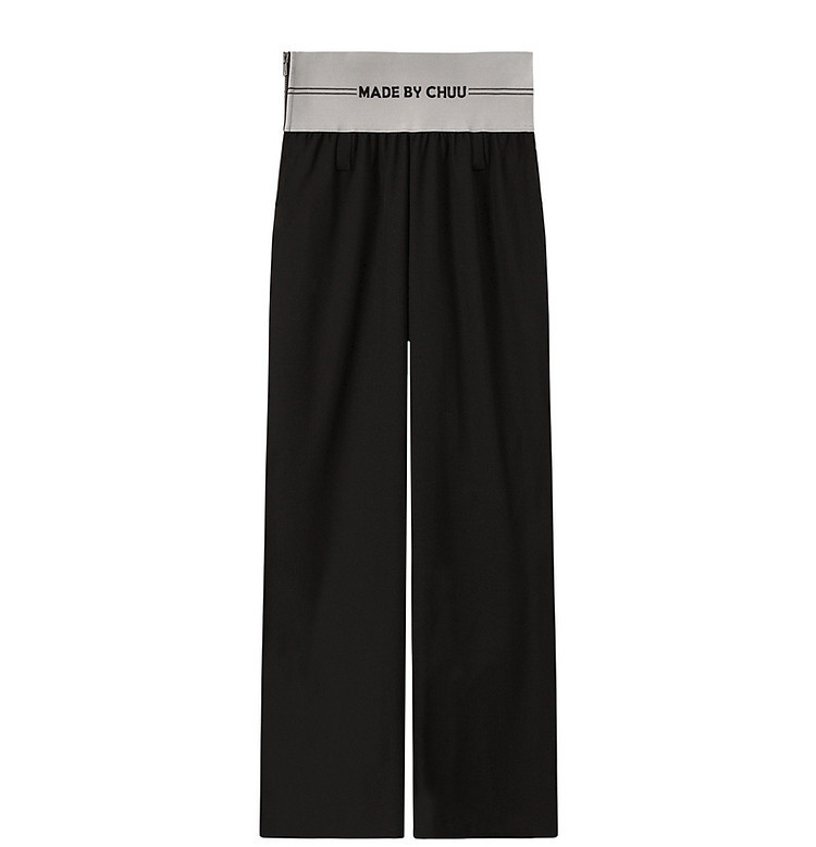 商品名称:CHUU撞色拼接休闲裤女春秋薄款字母高腰阔腿拖地裤 627987