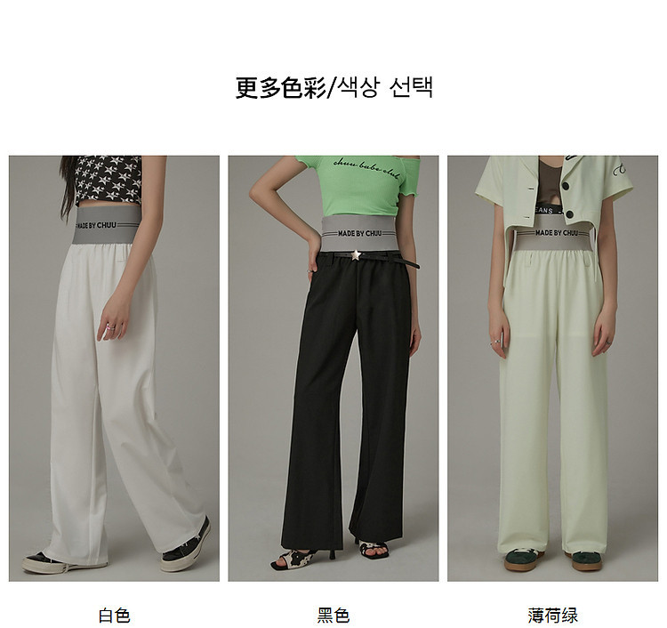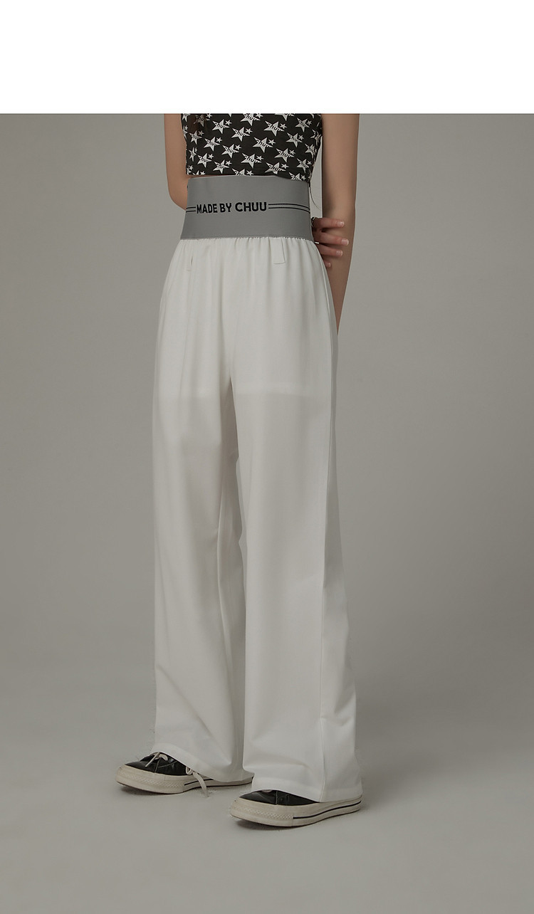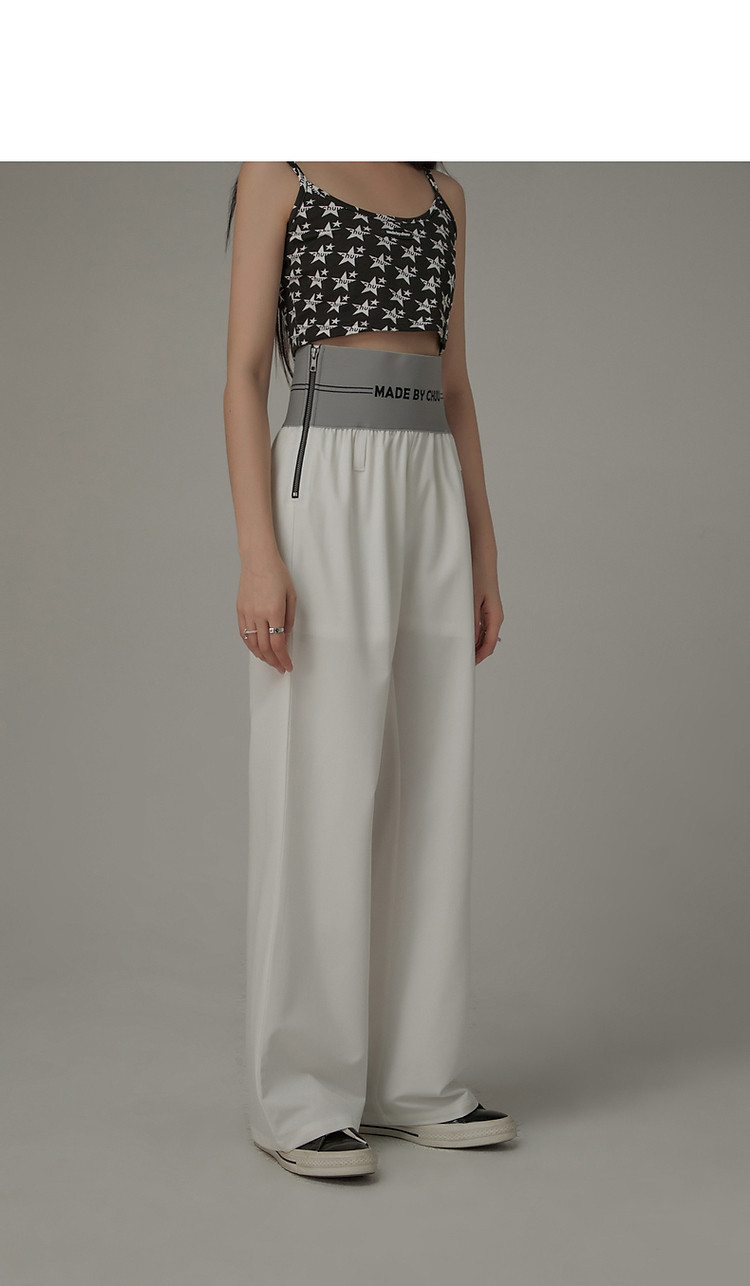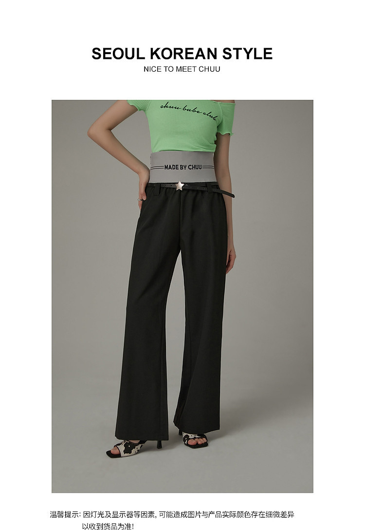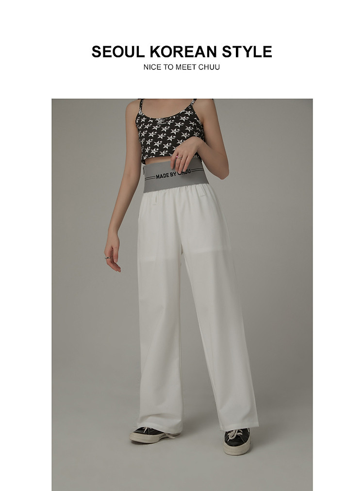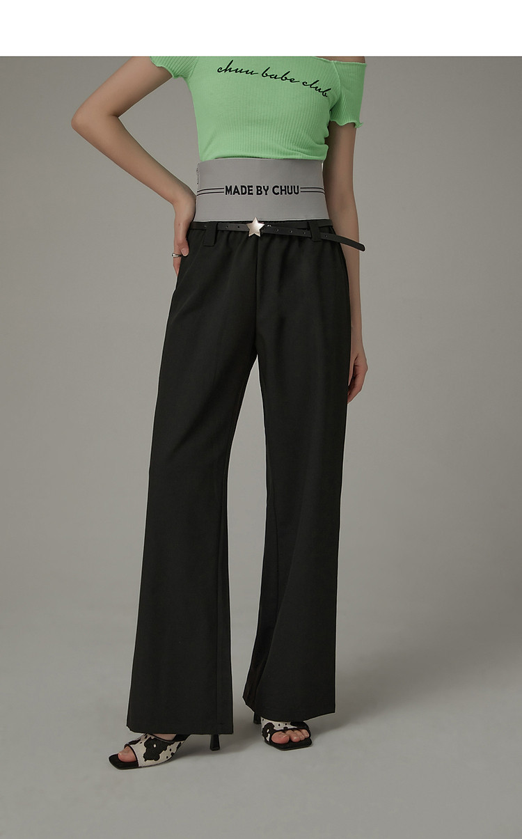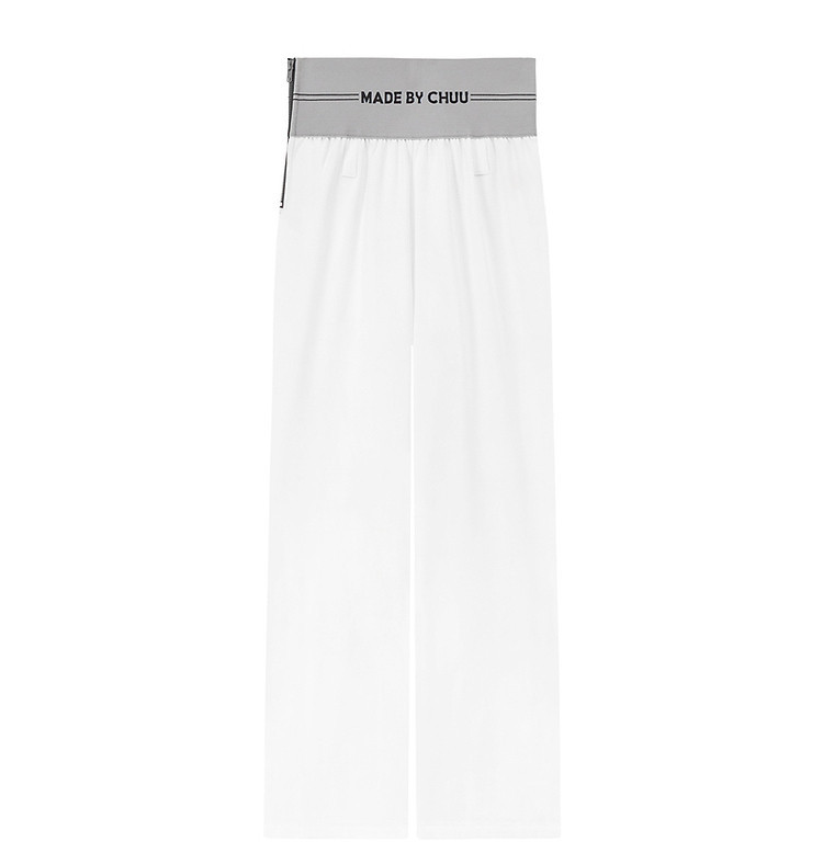商品名称:CHUU撞色拼接休闲裤女春秋薄款字母高腰阔腿拖地裤 627987