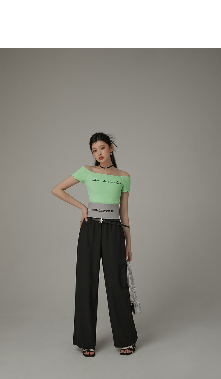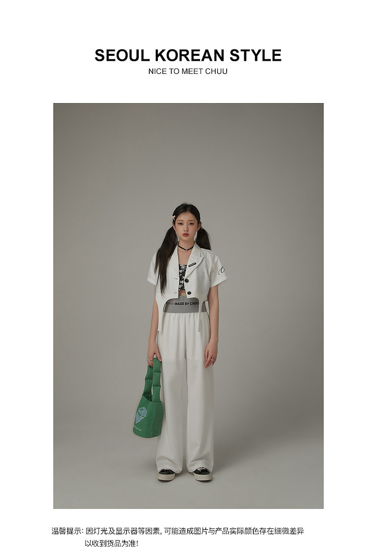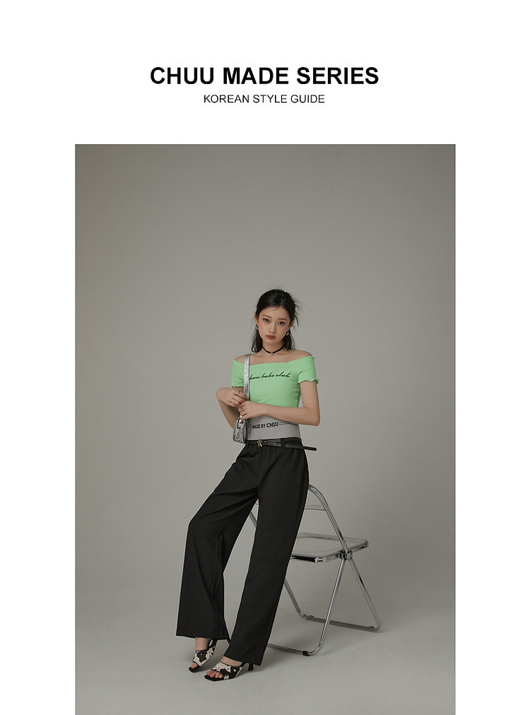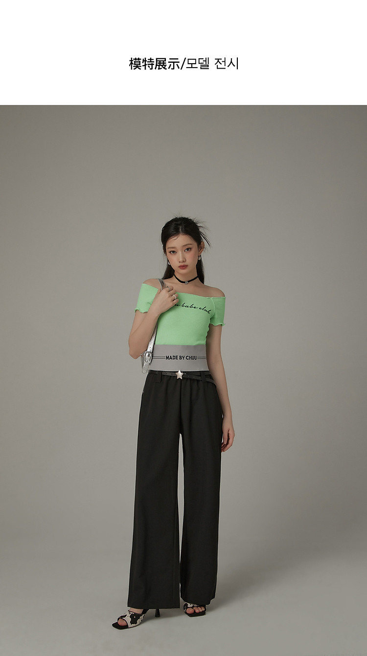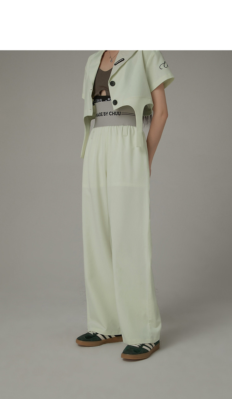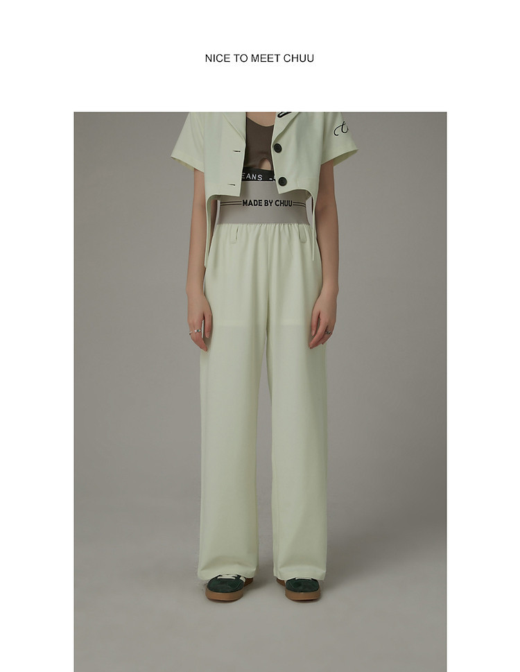 商品名称:CHUU撞色拼接休闲裤女春秋薄款字母高腰阔腿拖地裤 627987