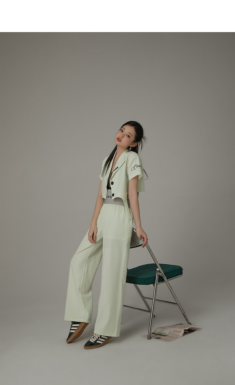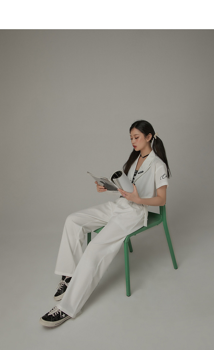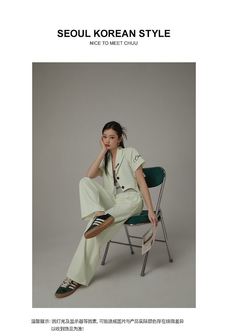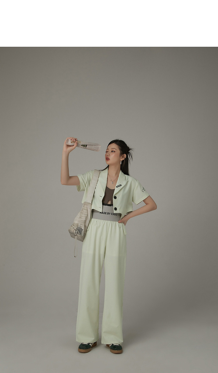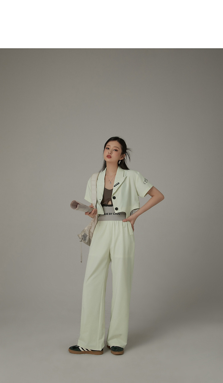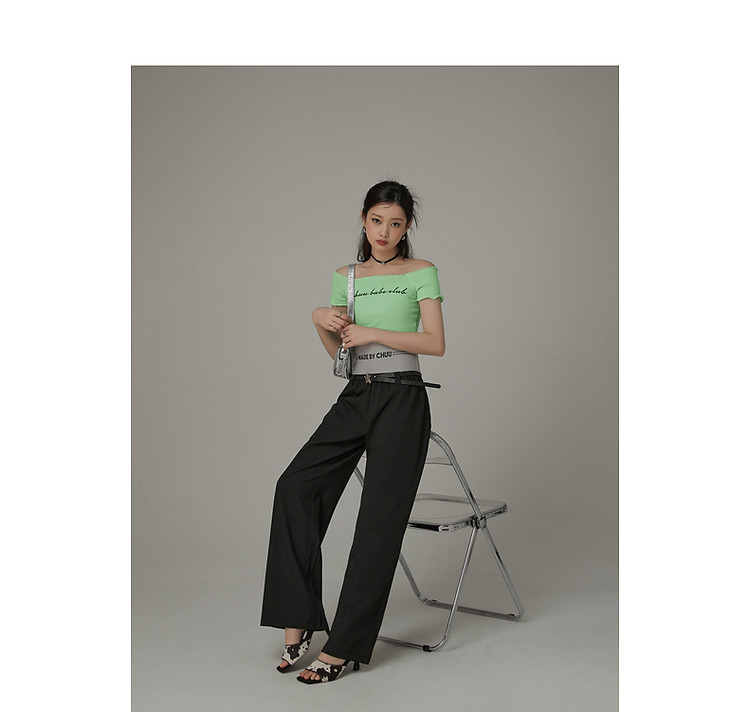 商品名称:CHUU撞色拼接休闲裤女春秋薄款字母高腰阔腿拖地裤 627987