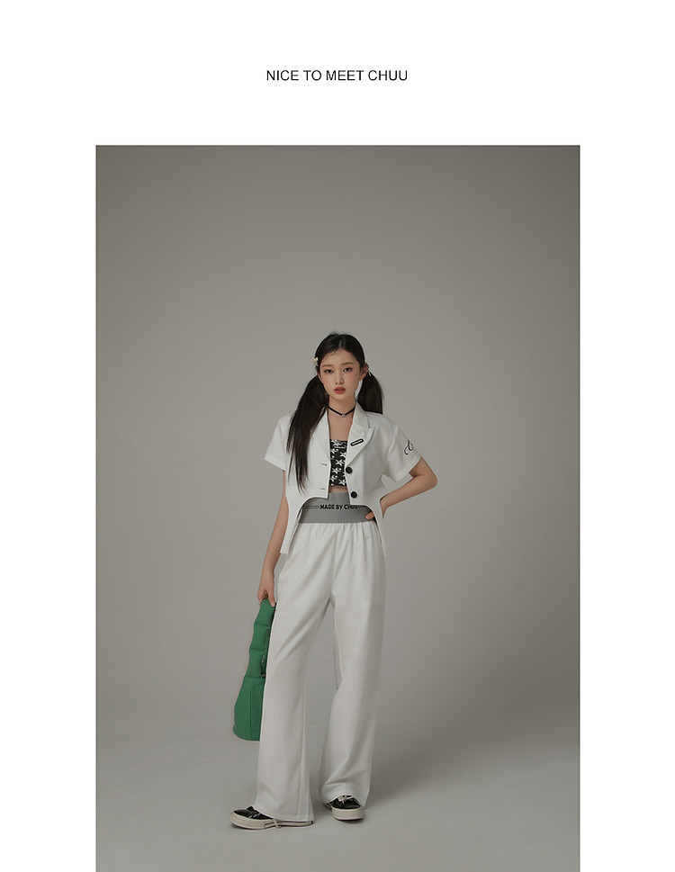 CHUU撞色拼接休闲裤女春秋薄款字母高腰阔腿拖地裤 627987
