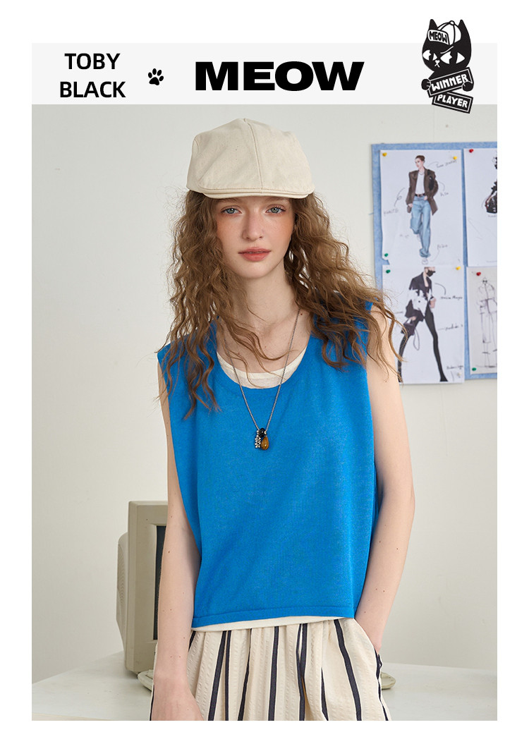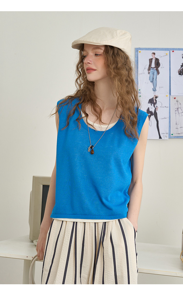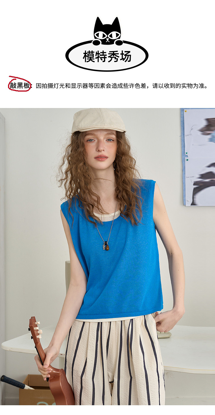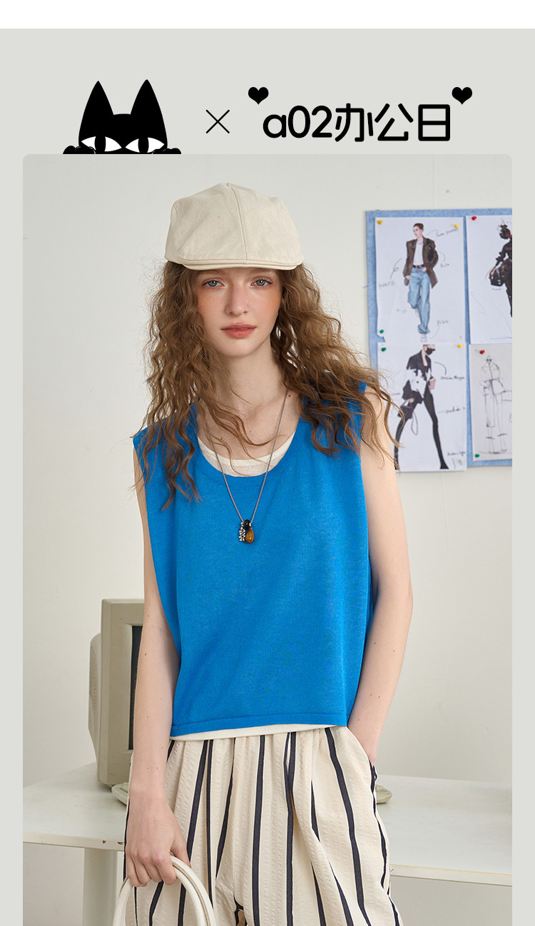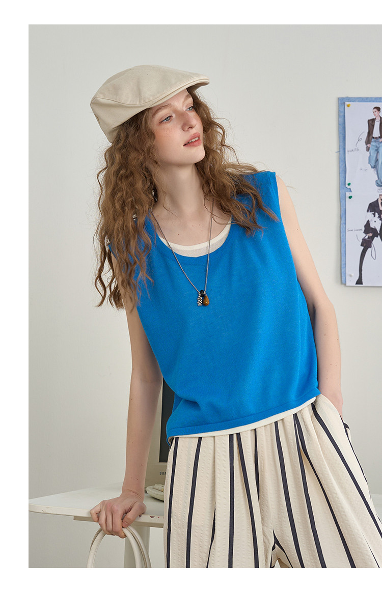 商品名称:后背镂空设计感假两件无袖上衣2025夏季百搭休闲女式针织衫 713885