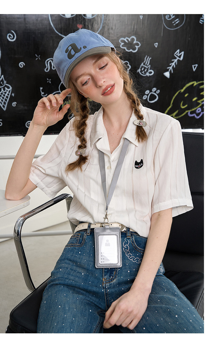 商品名称:竖条肌理感提花通勤气质上衣2025夏季百搭休闲女式衬衫 428573