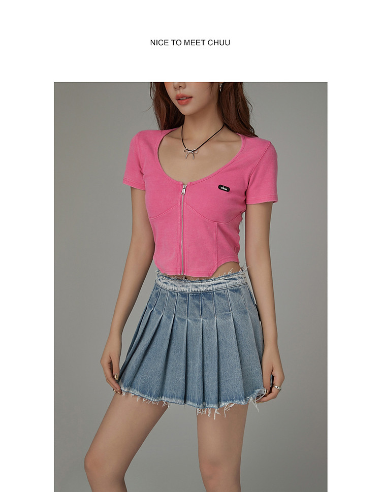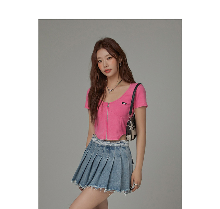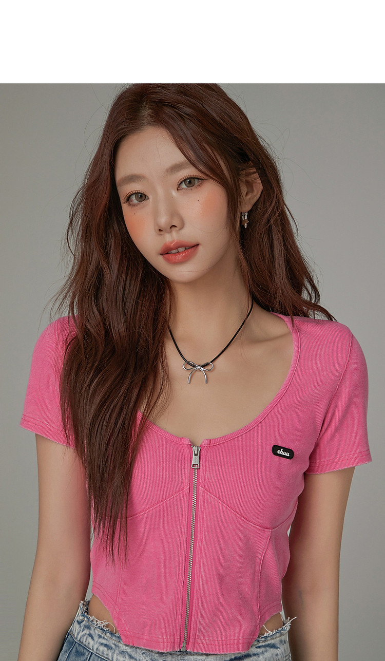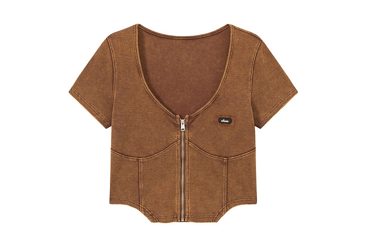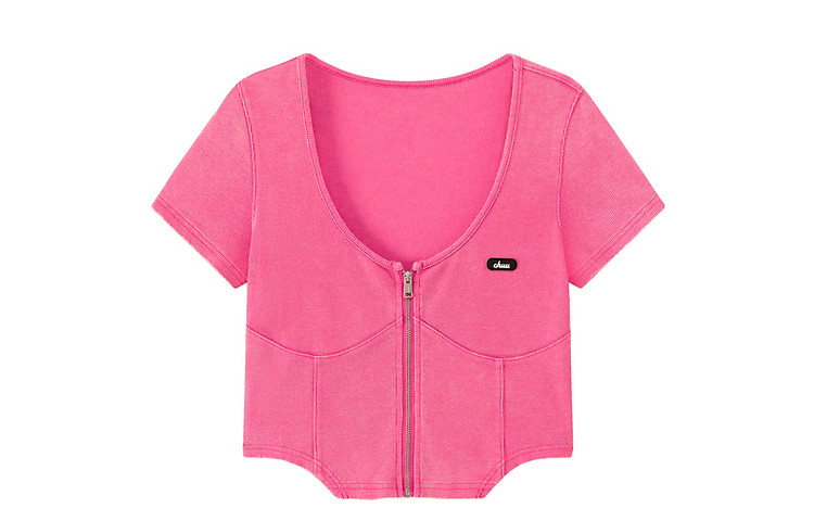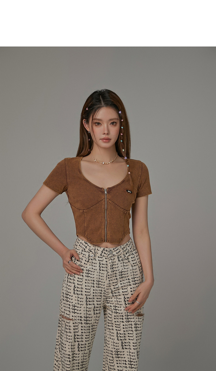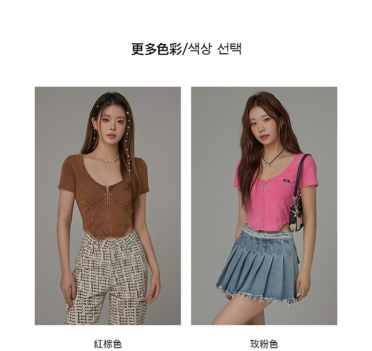 商品名称:直角肩短袖T恤女2025春夏辣妹做旧拉链不规则立体感上衣 201619
