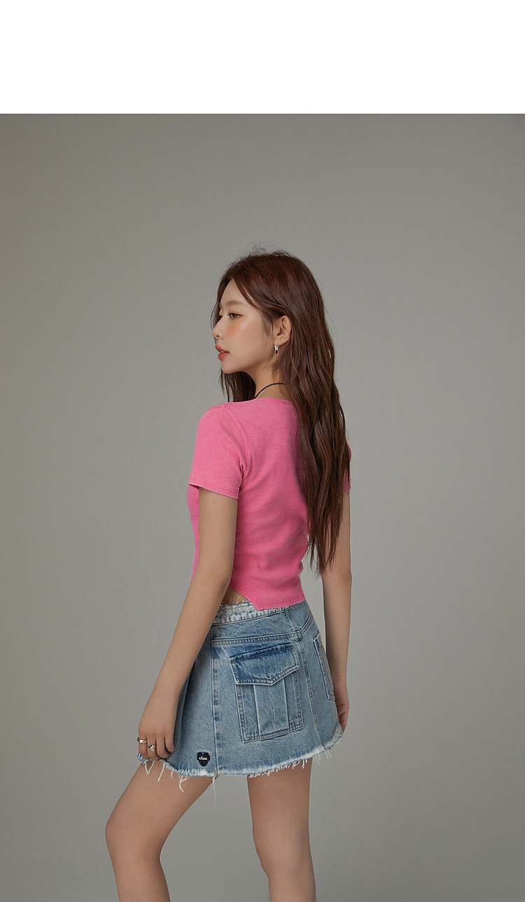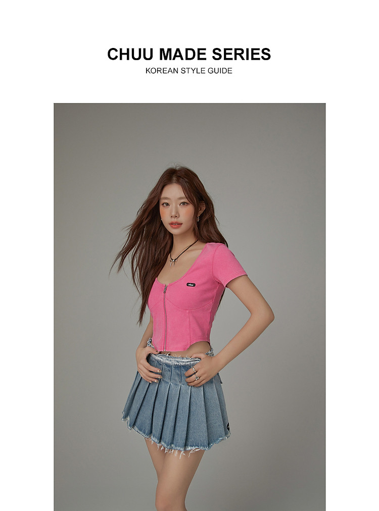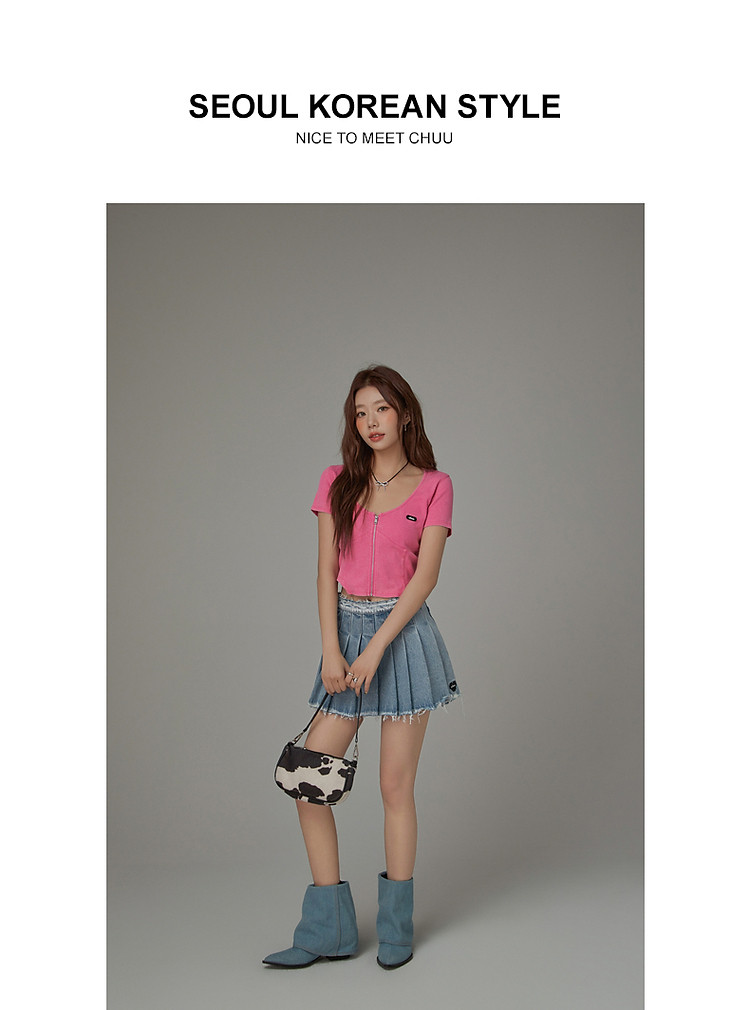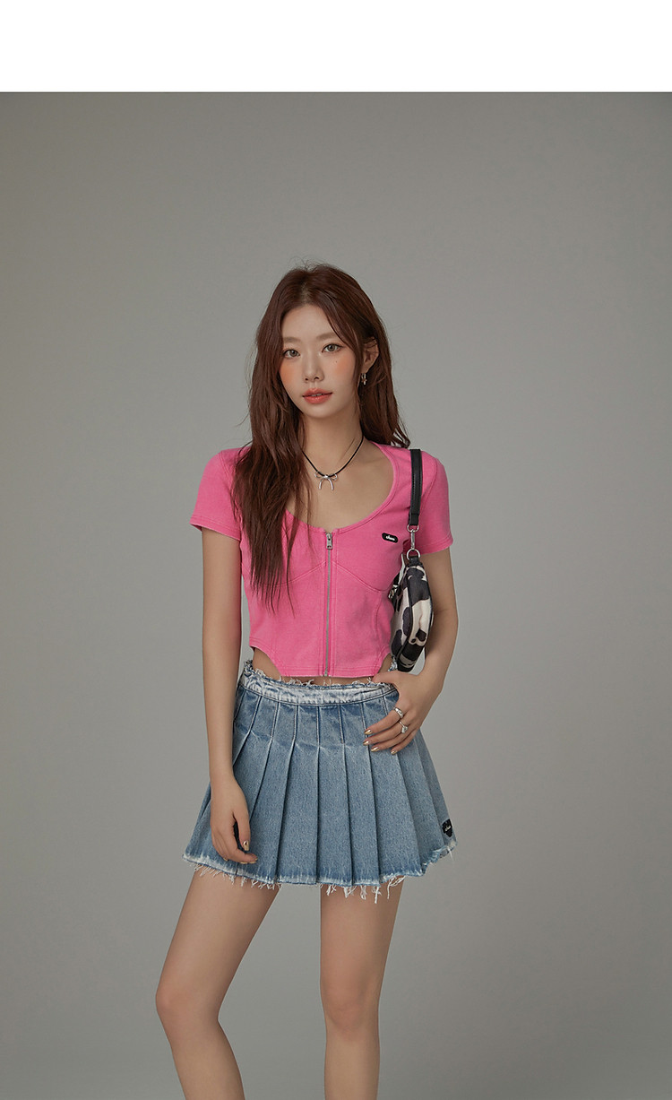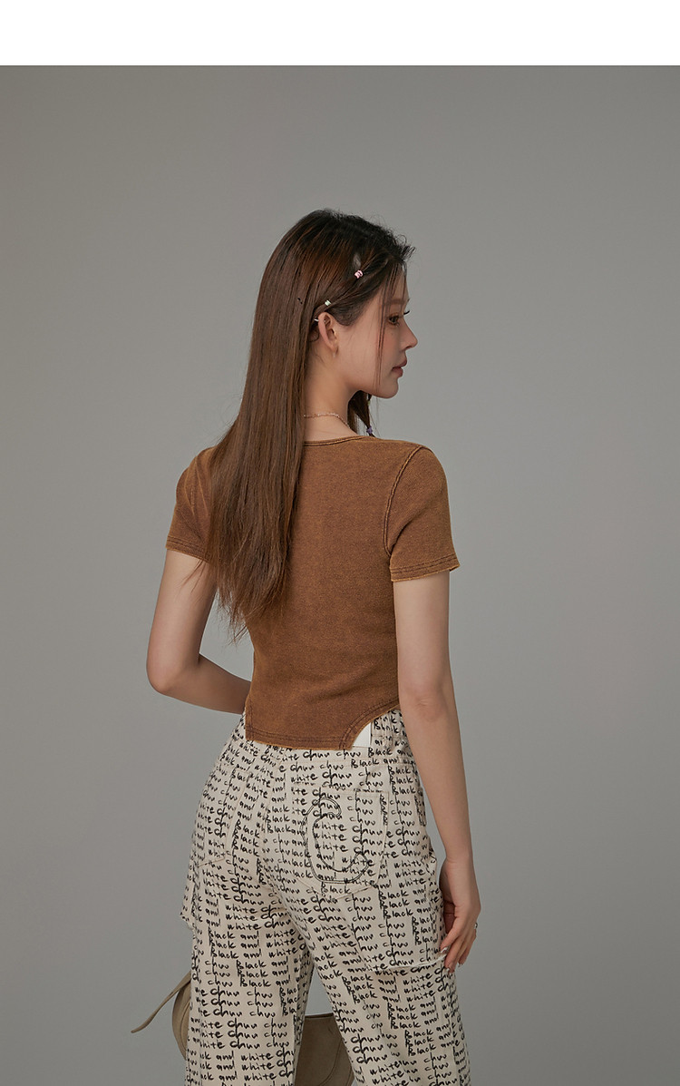 商品名称:直角肩短袖T恤女2025春夏辣妹做旧拉链不规则立体感上衣 201619