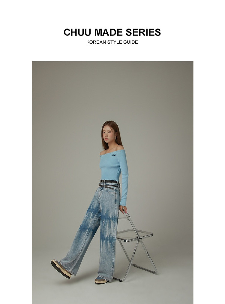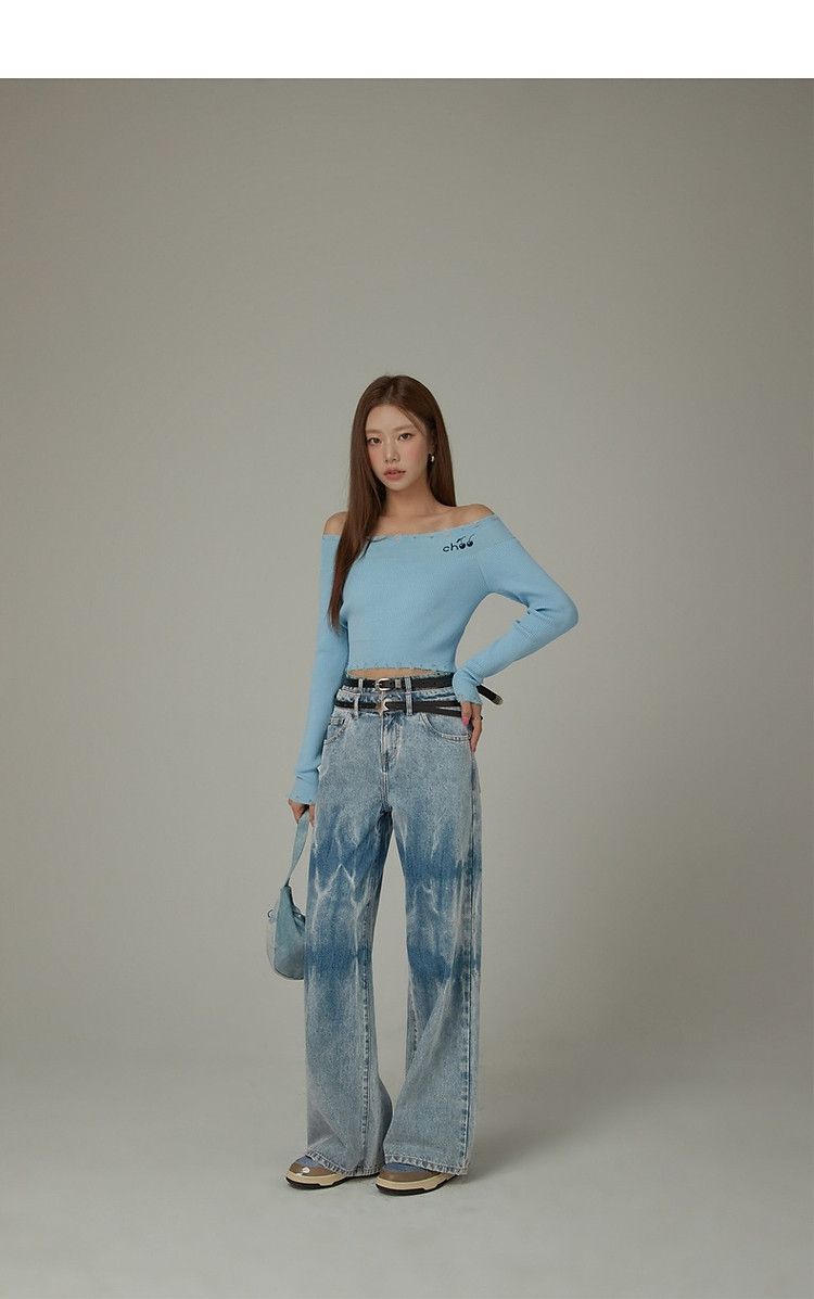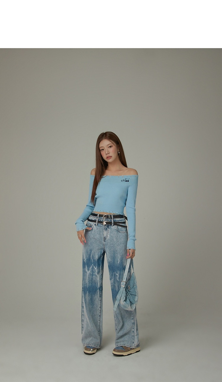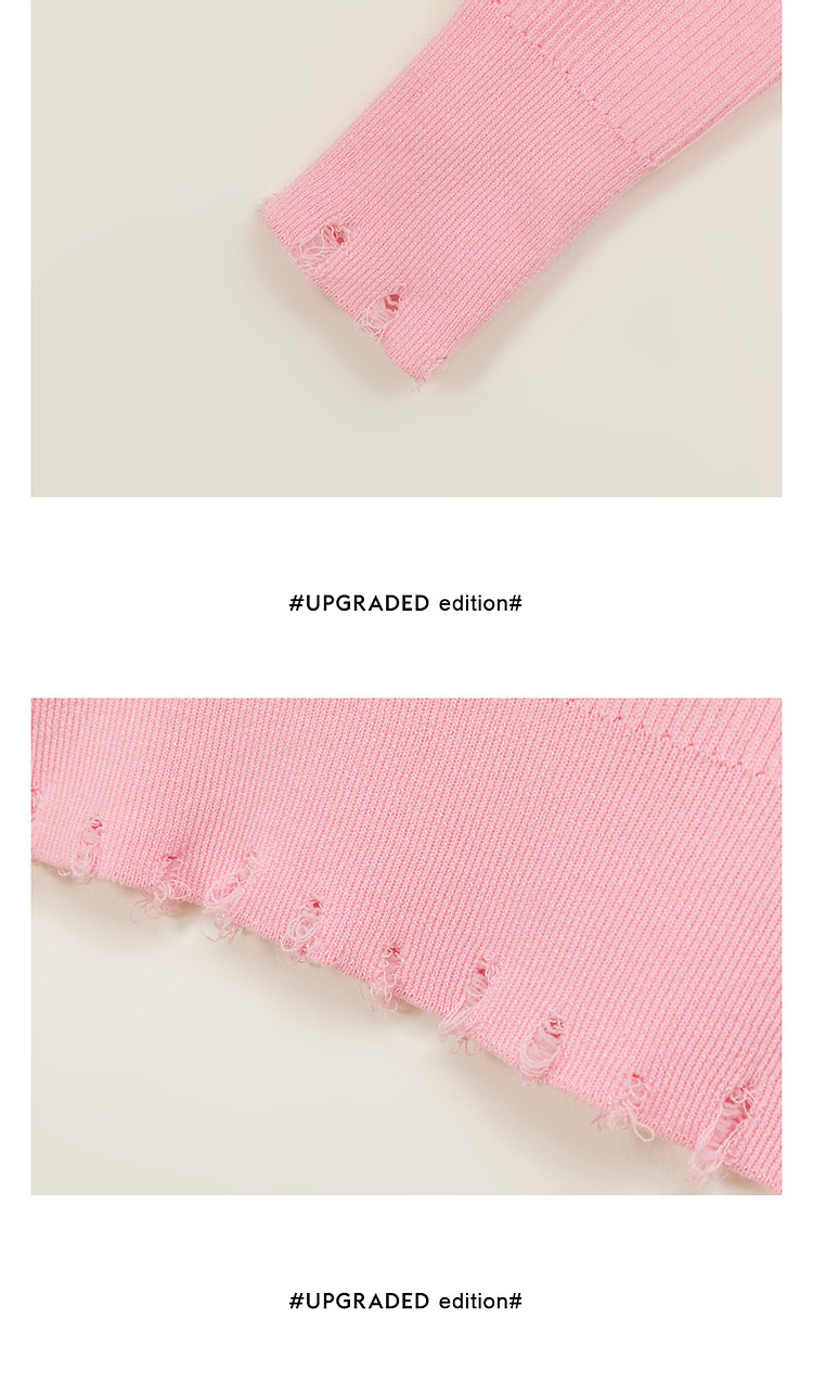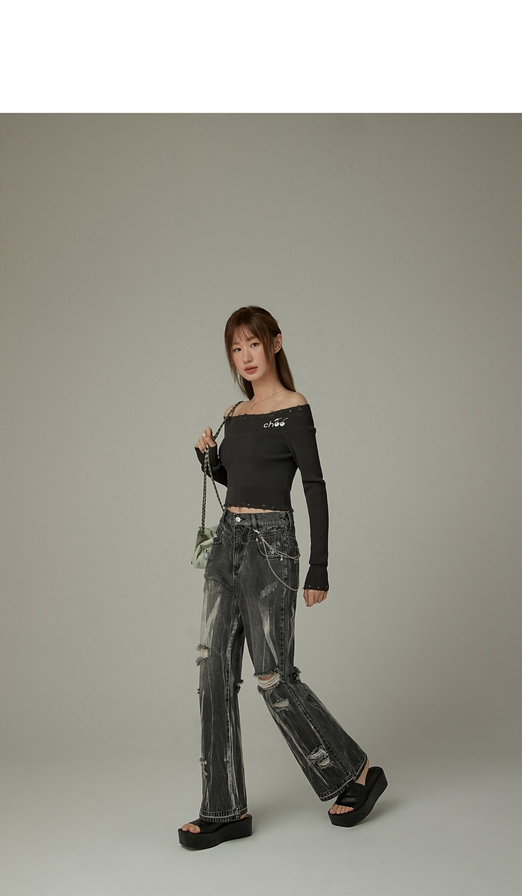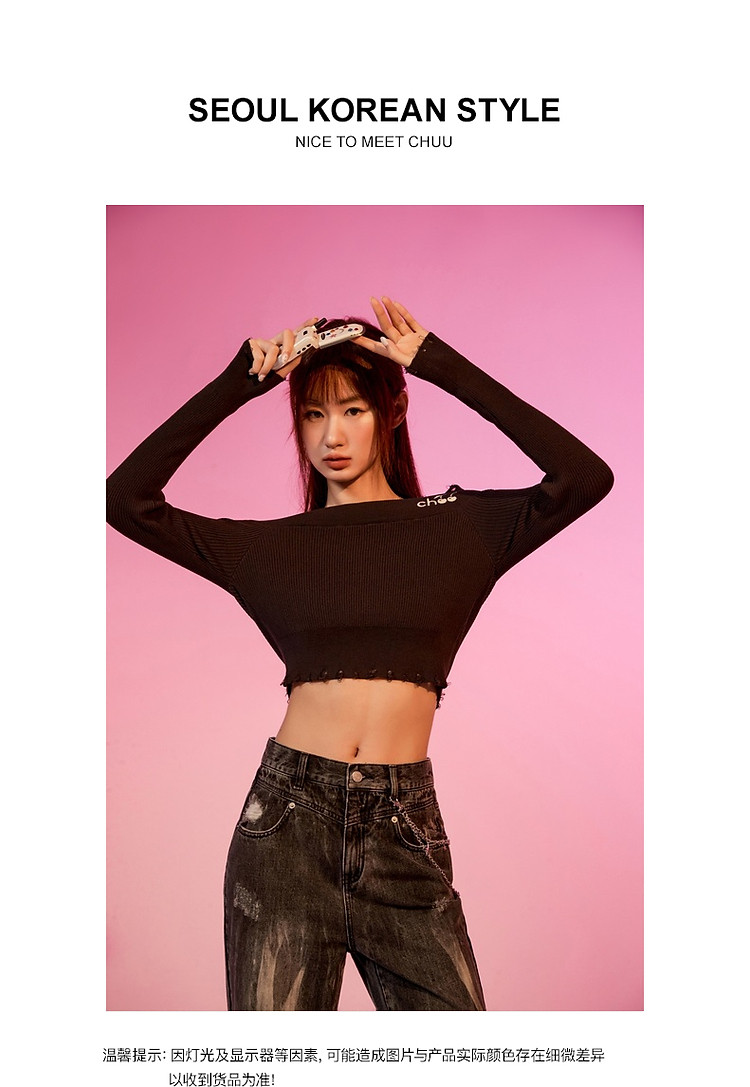 商品名称:CHUU一字肩针织衫女2025春新款小樱桃字母刺绣破洞上衣 686547