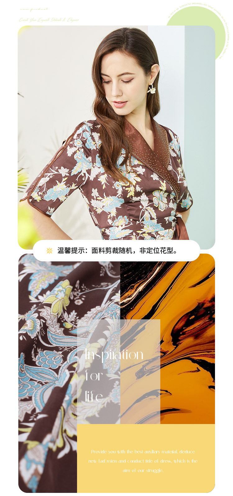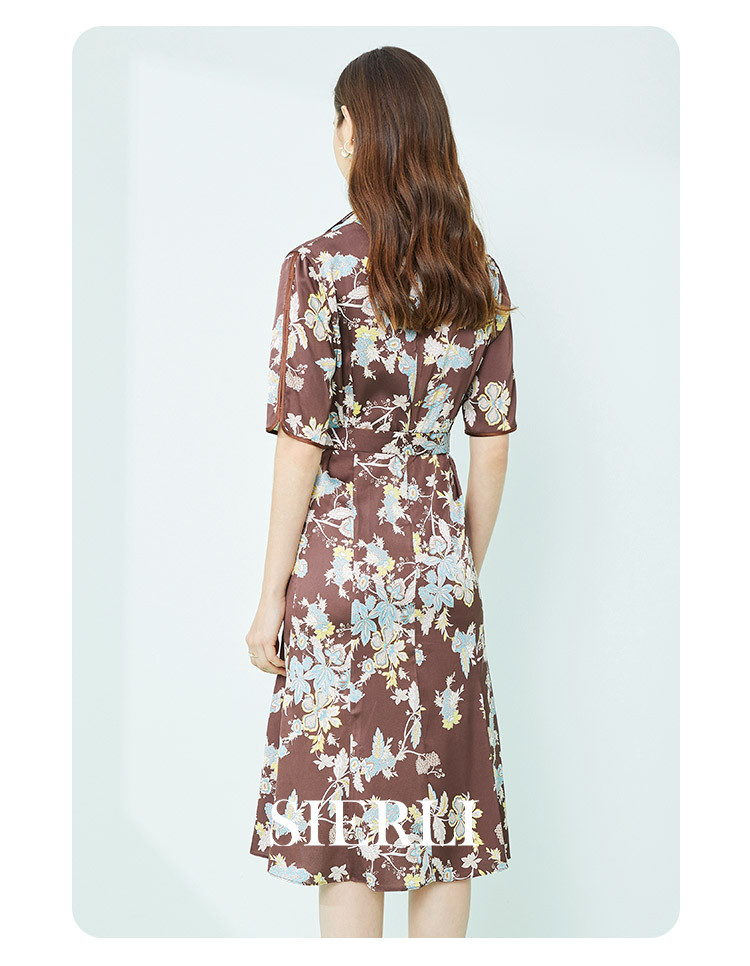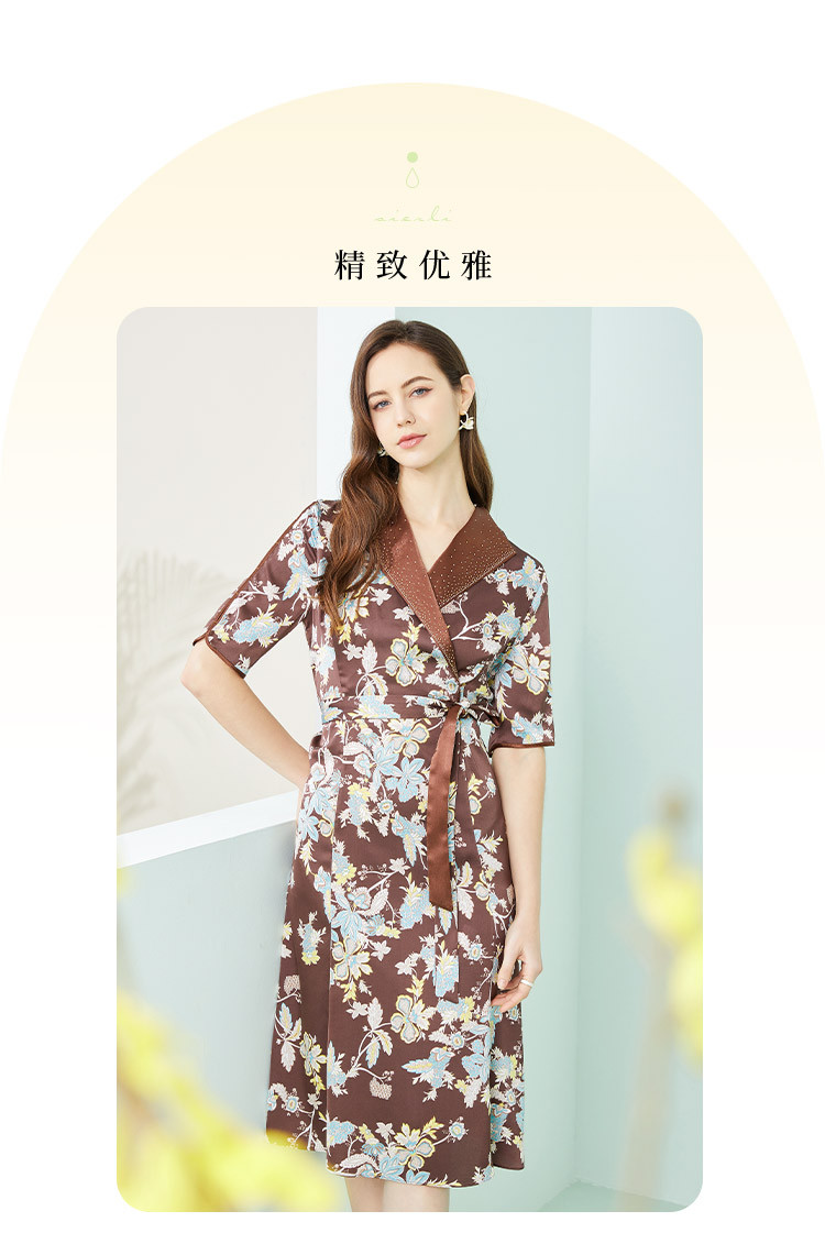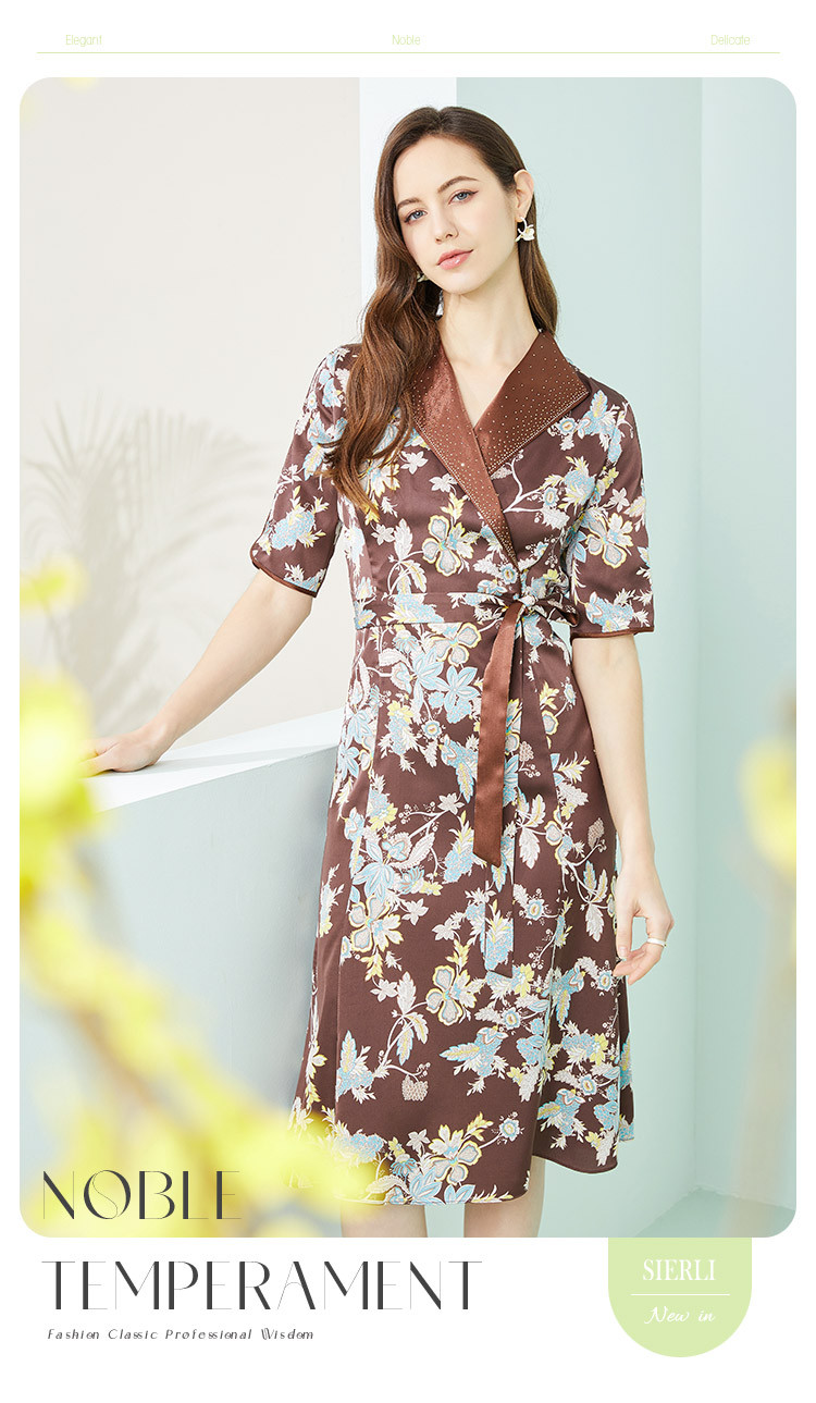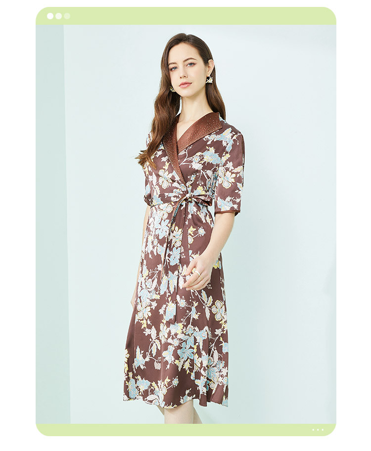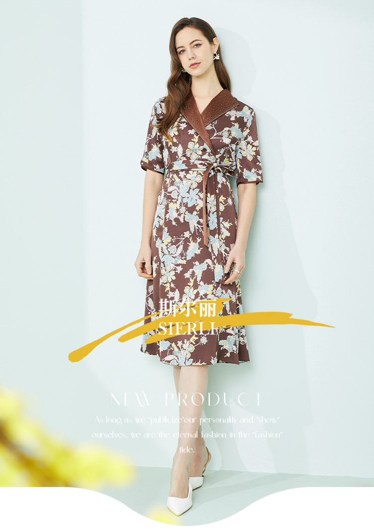 商品名称:商场同款秋季法式复古通勤小碎花优雅西装翻领显瘦连衣裙 788319
