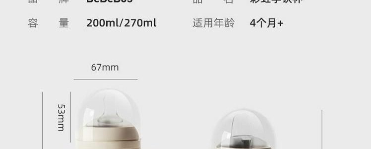 商品名称:BeBeBus 彩虹学饮杯 鸭嘴杯+吸嘴 200ml 6-12个月(新款)