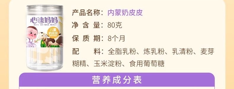 商品名称:心迪妈妈 儿童奶皮皮 80g/罐