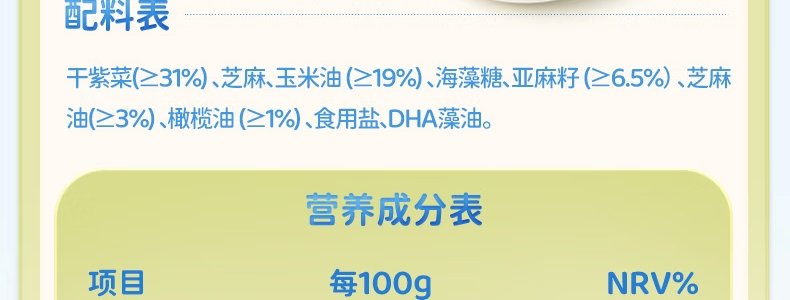 商品名称:小鹿蓝蓝 DHA高钙高铁拌饭海苔碎 原味 120g