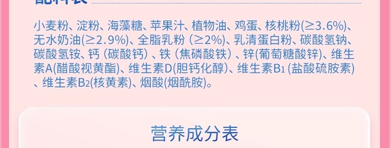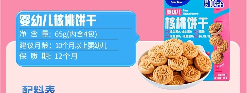 商品名称:小鹿蓝蓝 核桃饼干 65g/盒