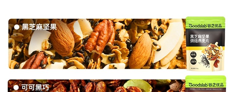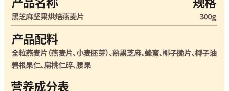 商品名称:谷之优品 黑芝麻坚果烘焙燕麦片 300g*1袋