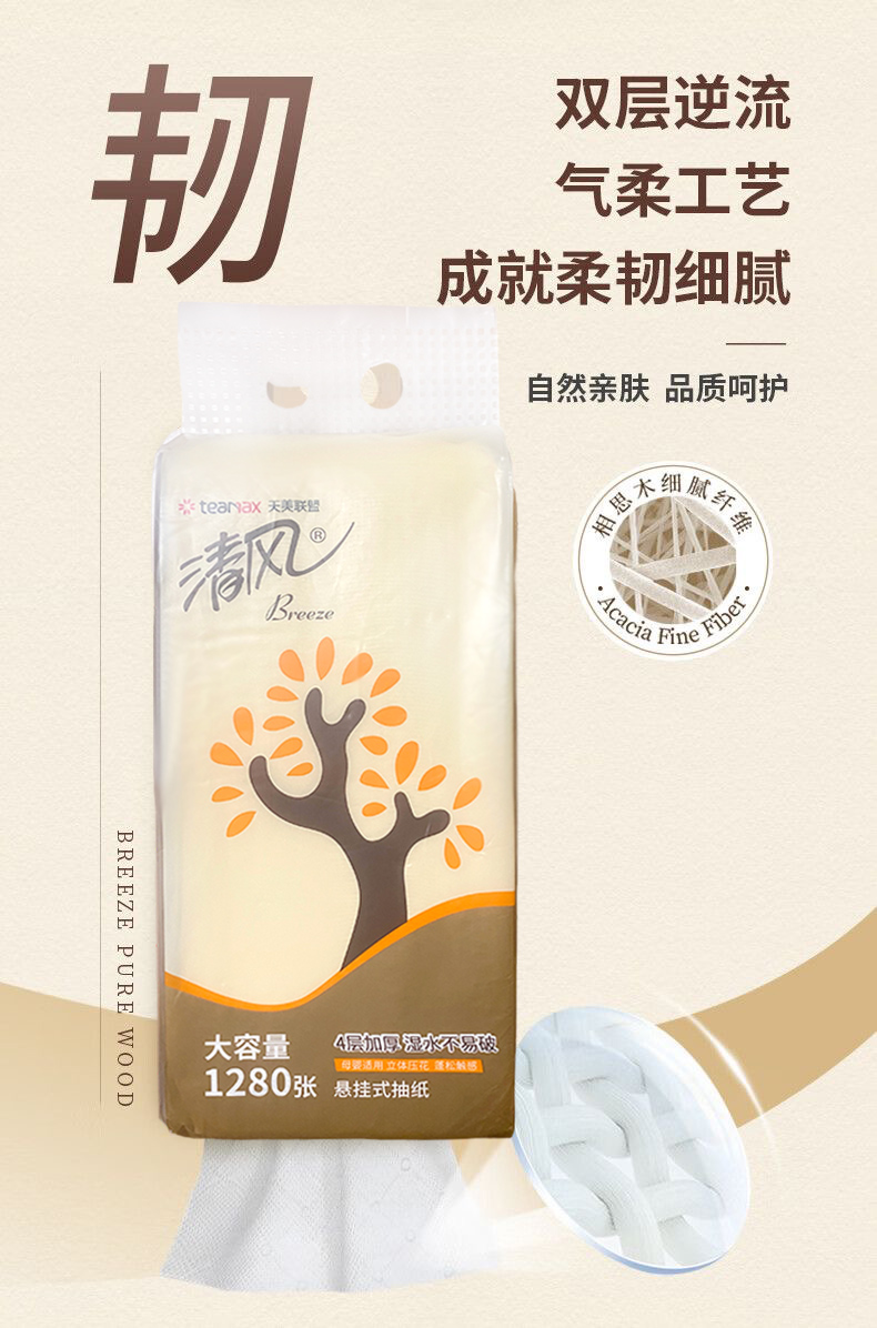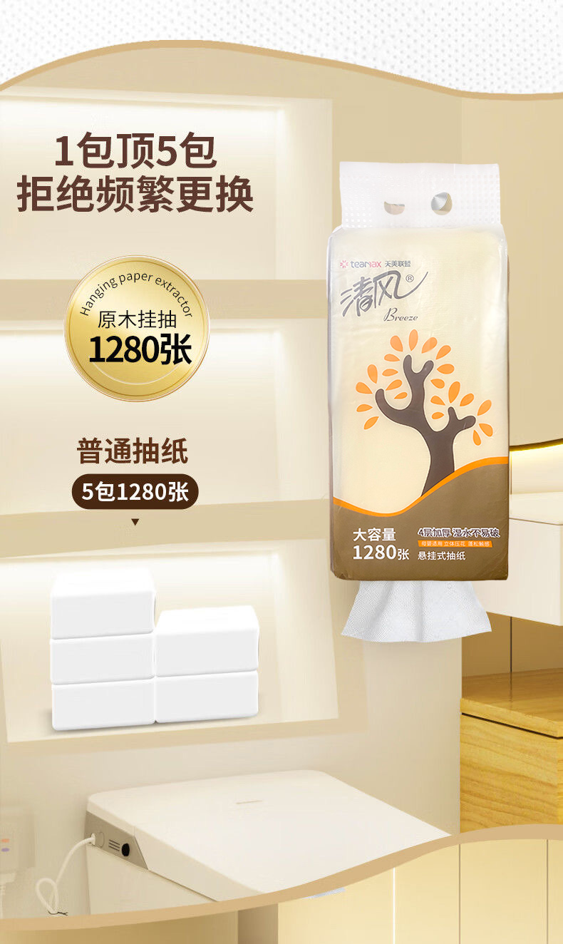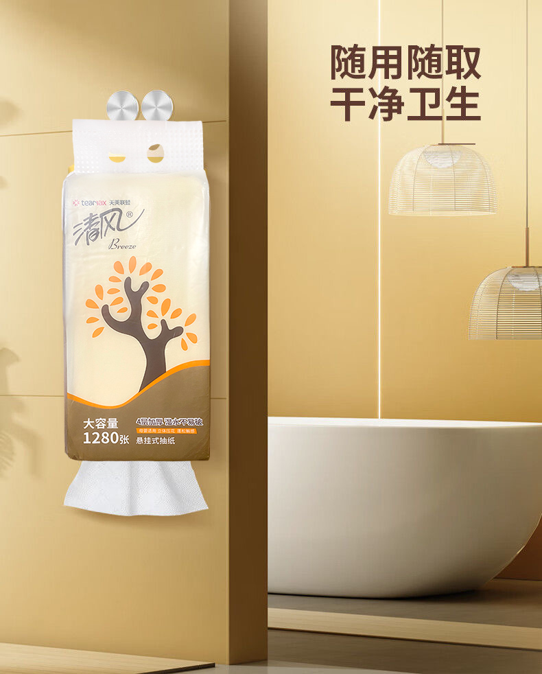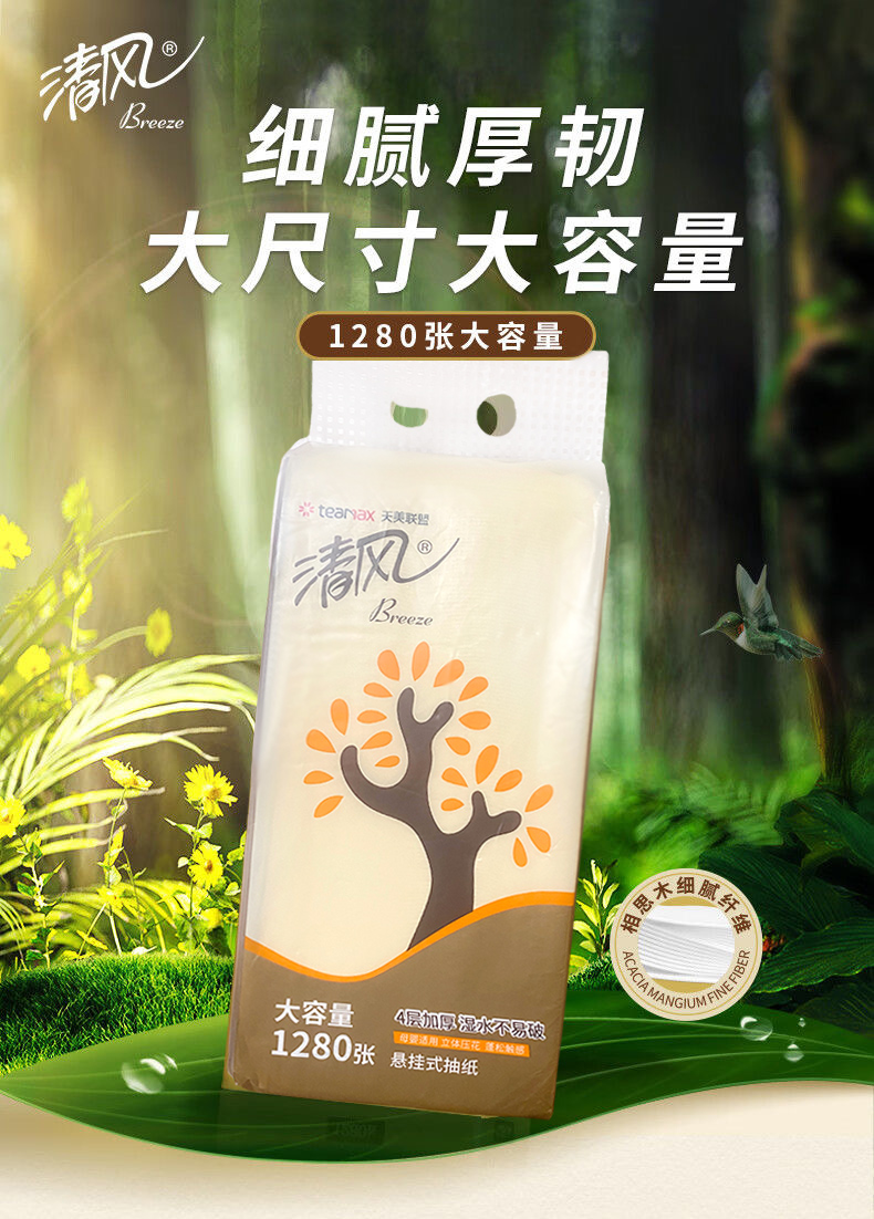 Breeze/清风4层悬挂式底部抽取纸巾1280张(320抽)/提AR1ATM