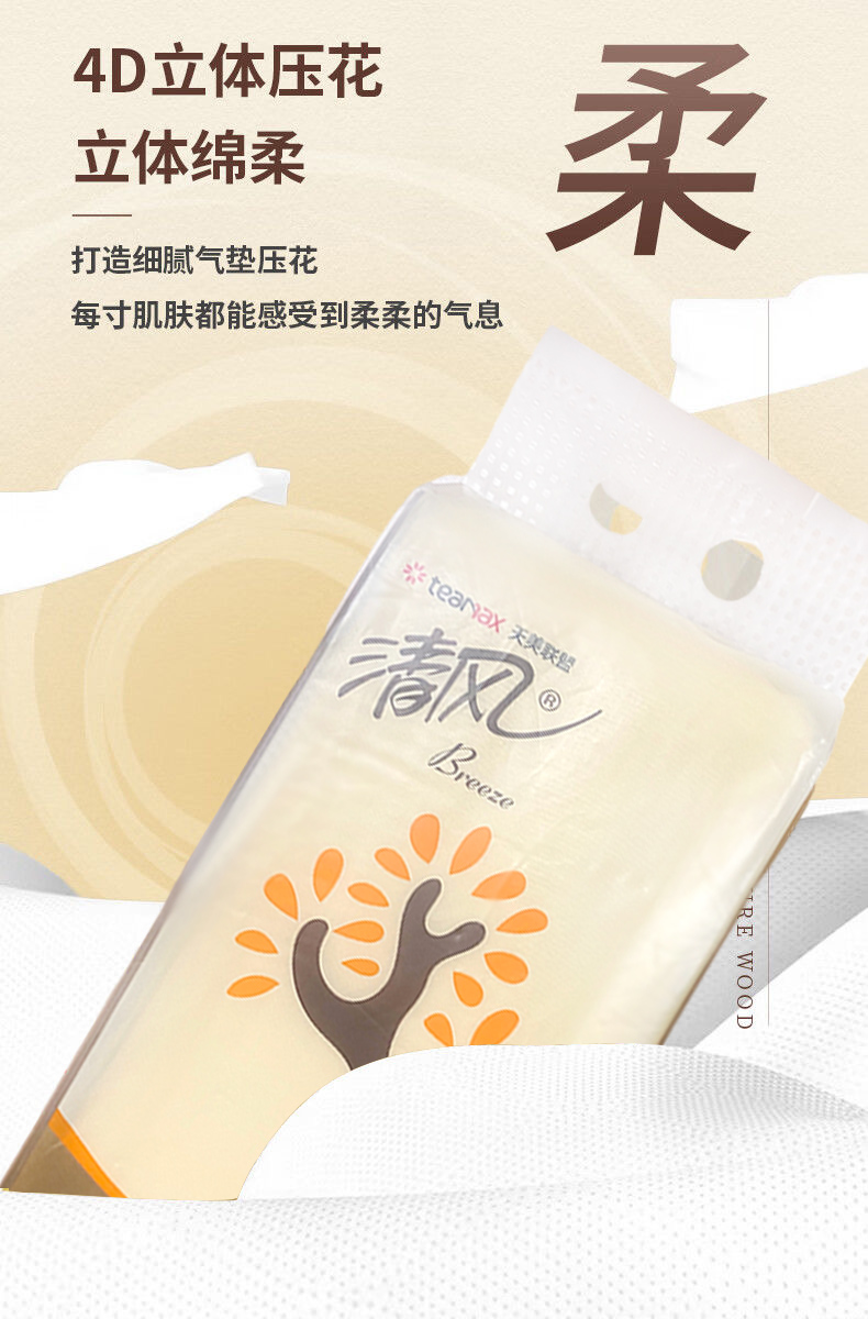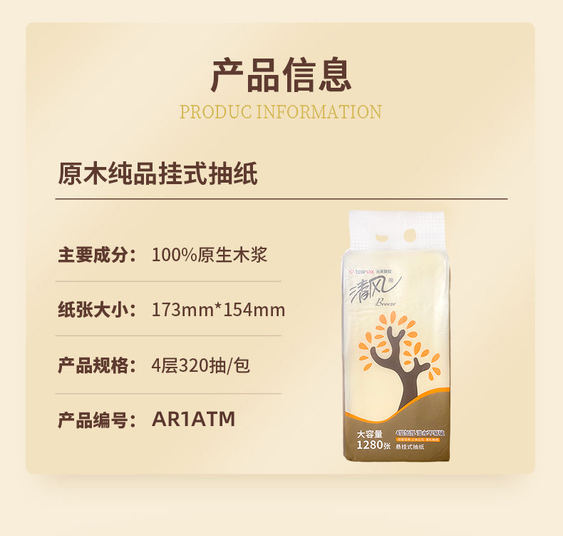 商品名称:Breeze/清风4层悬挂式底部抽取纸巾1280张(320抽)/提AR1ATM