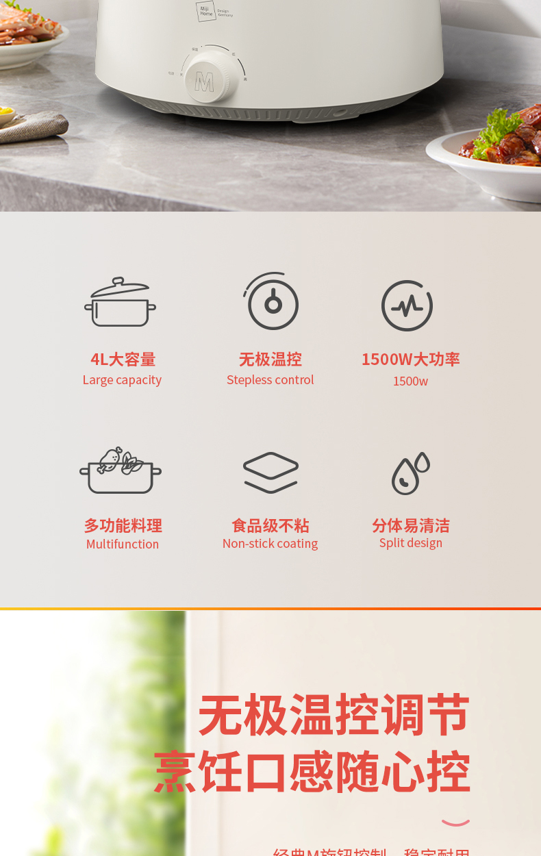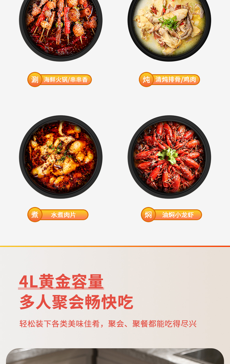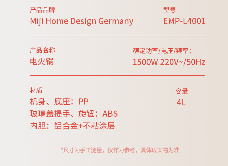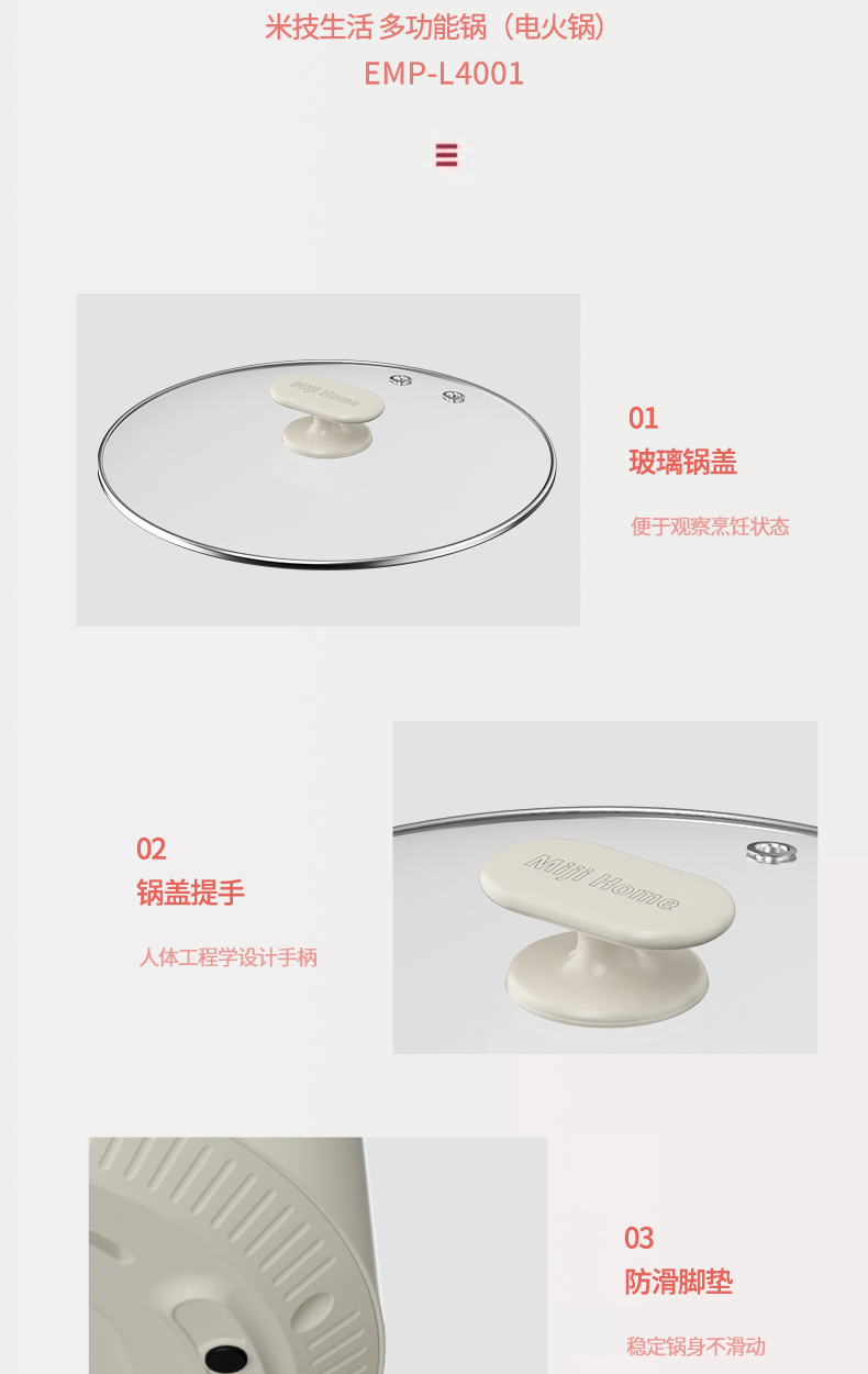 商品名称:Miji/米技4升多功能电火锅EMP-L4001