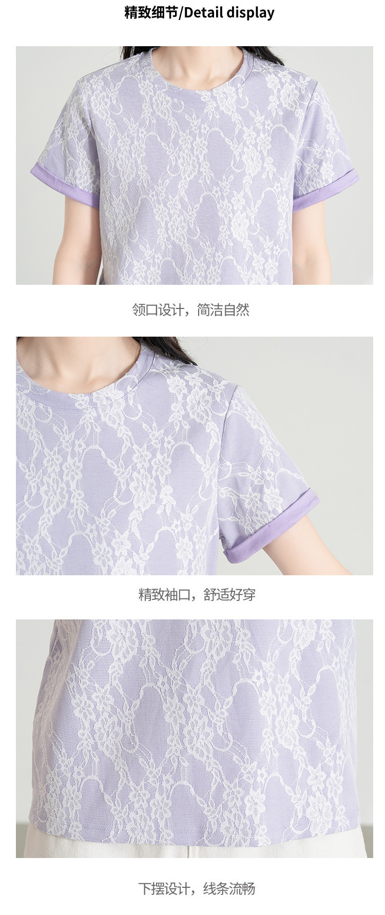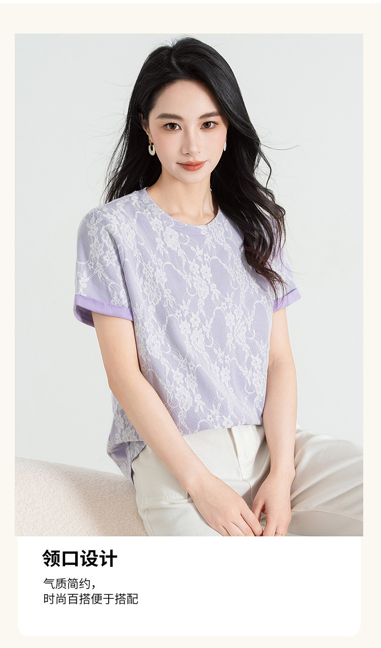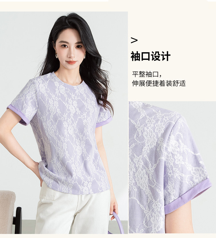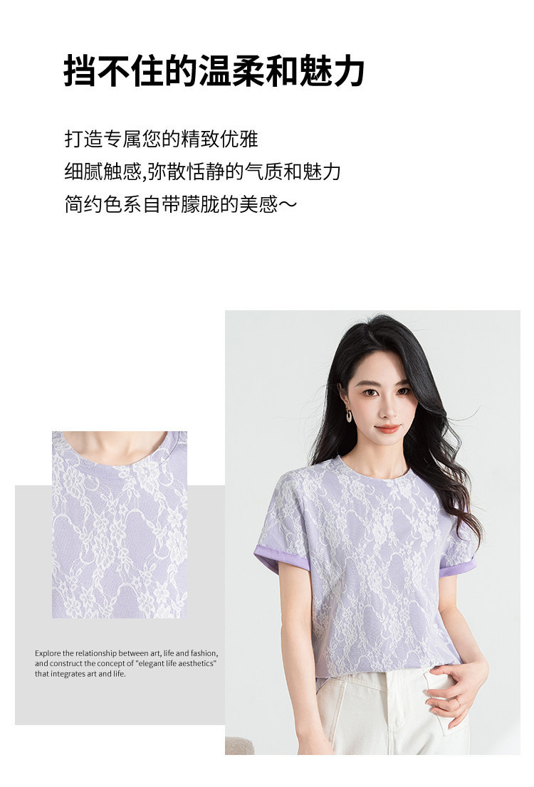 商品名称:【蕾丝提花】假两件短袖t恤女夏季2025拼接设计感翻边短袖t 301983