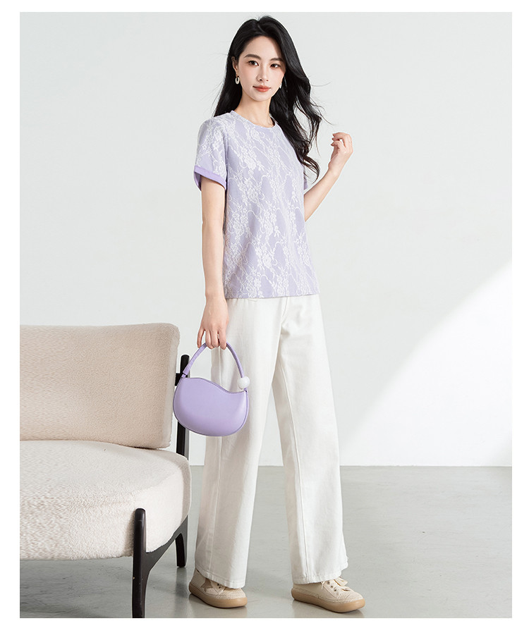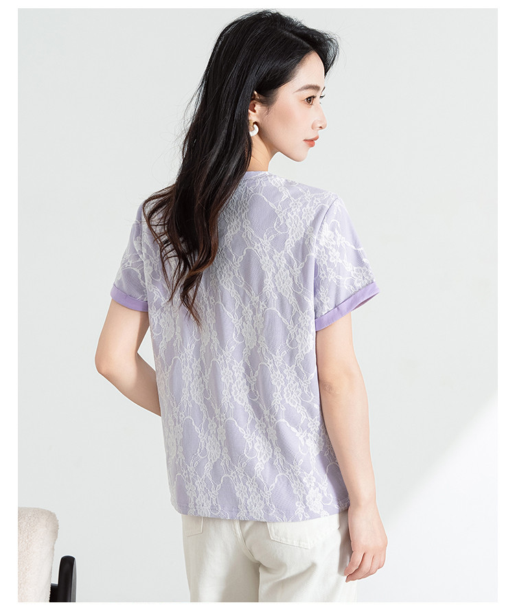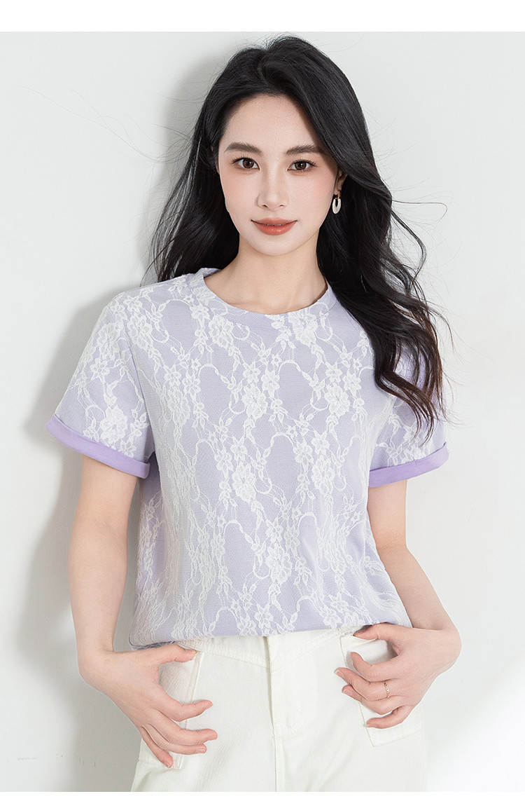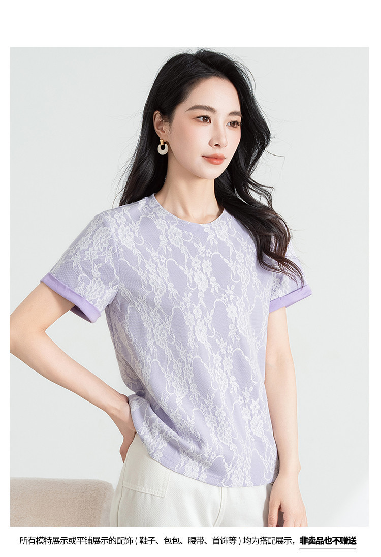 商品名称:【蕾丝提花】假两件短袖t恤女夏季2025拼接设计感翻边短袖t 301983