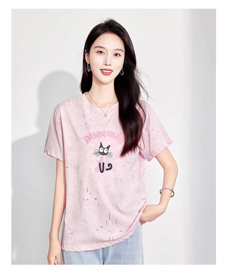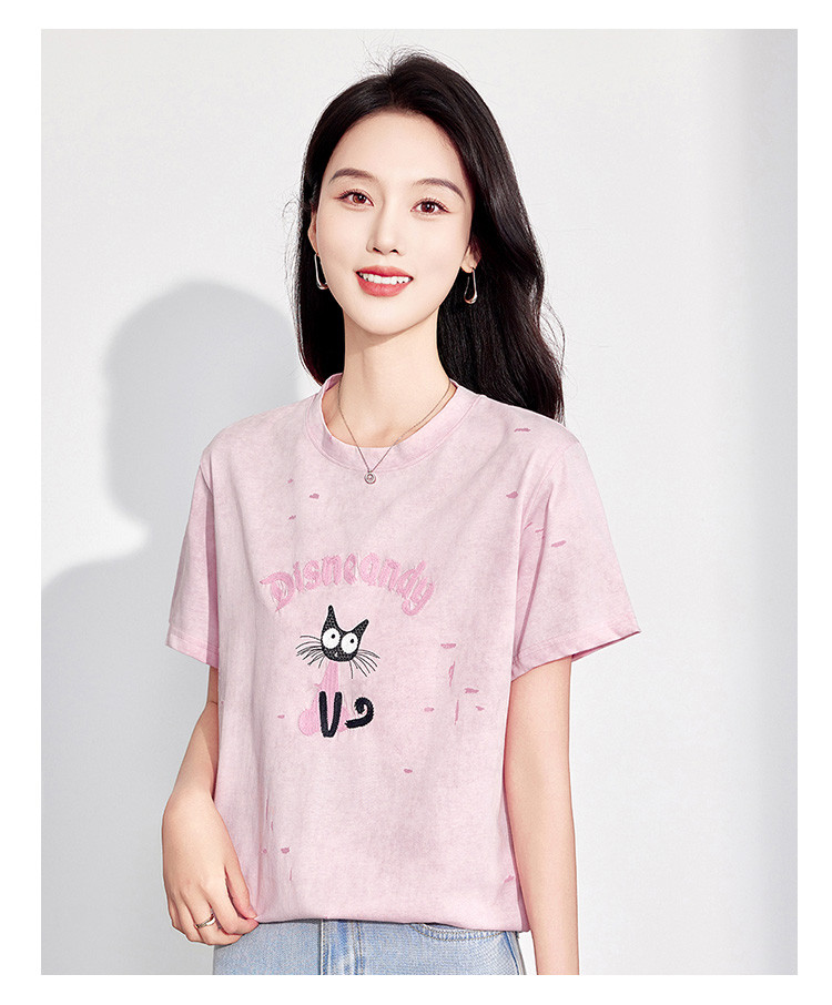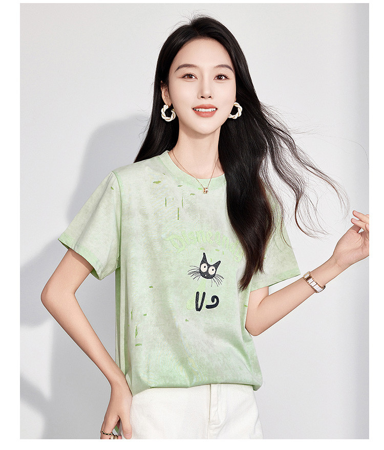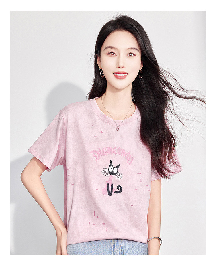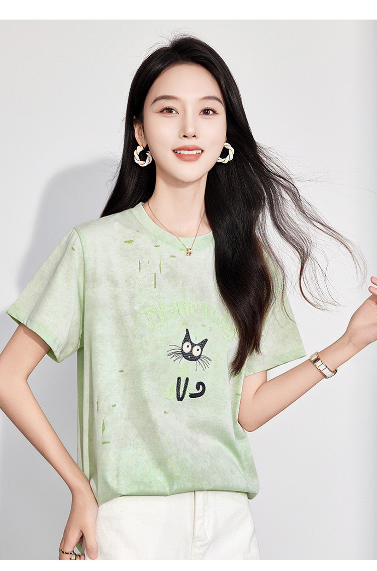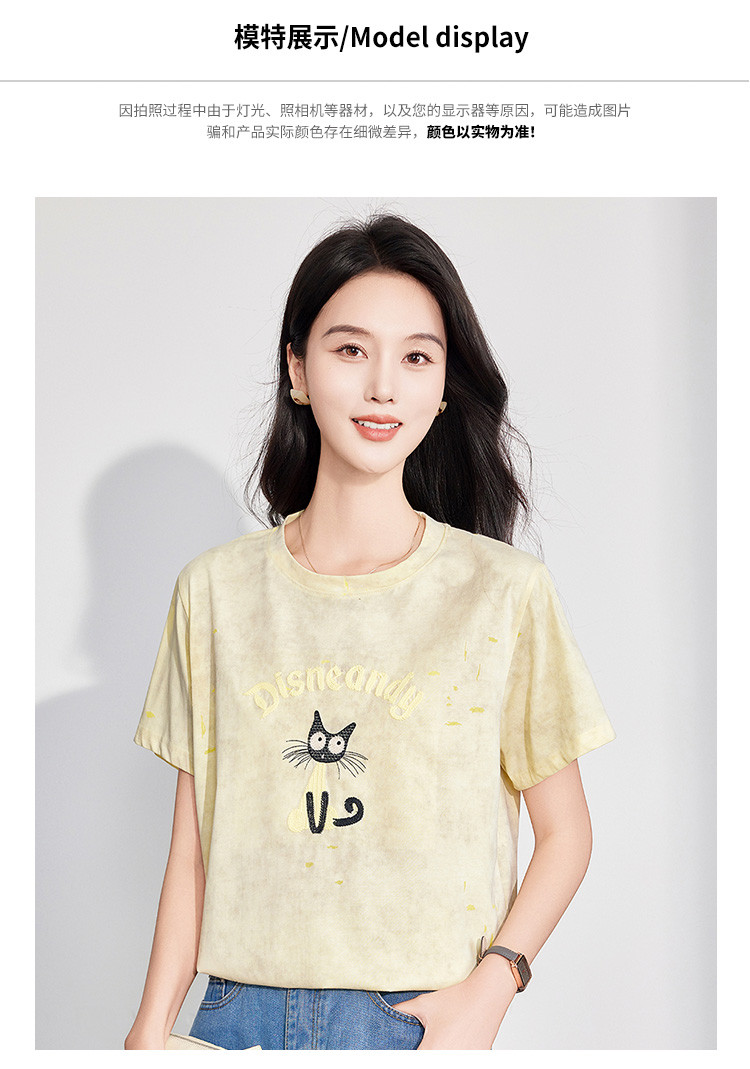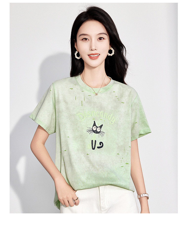 25夏季新款做旧氛围感减龄猫咪短袖女式韩系街头风百搭T恤上衣 601951