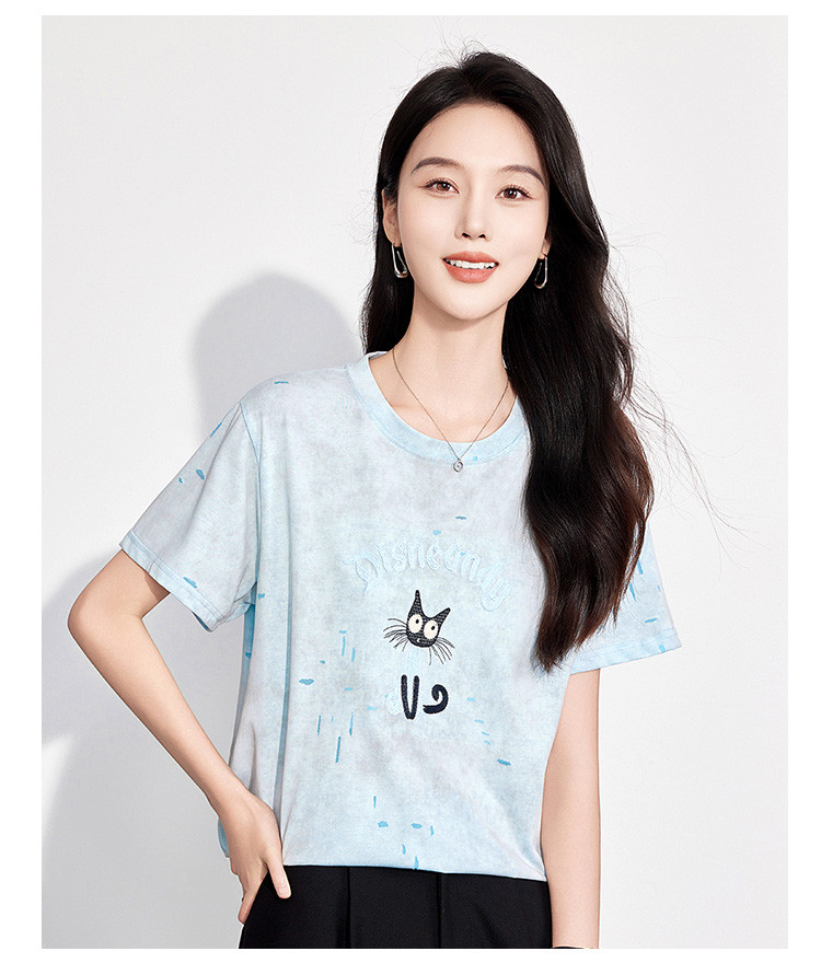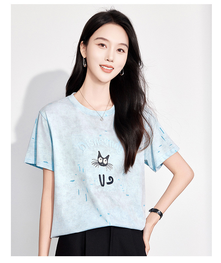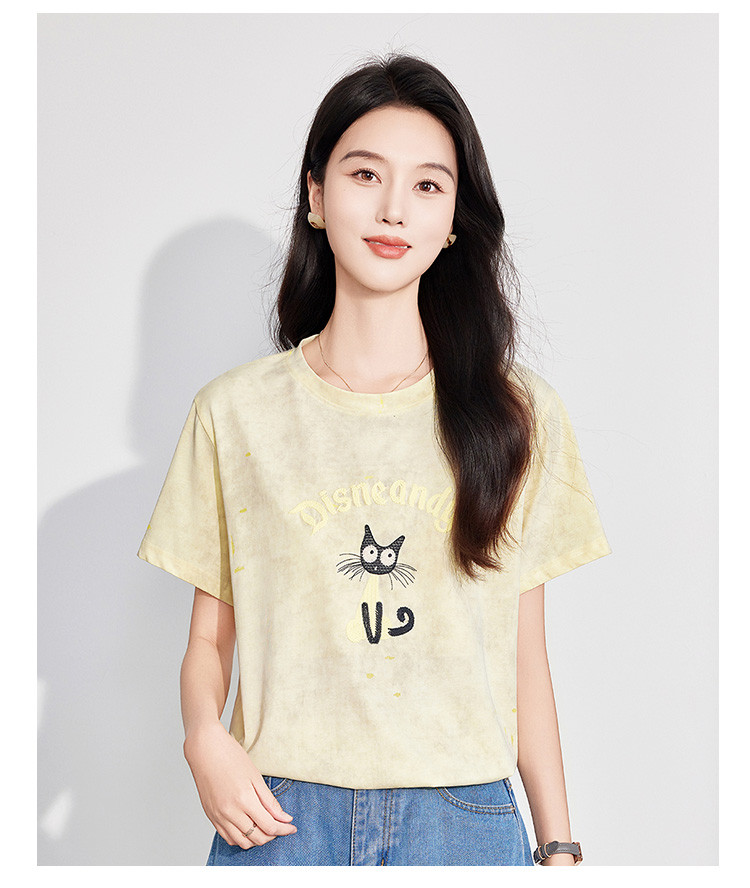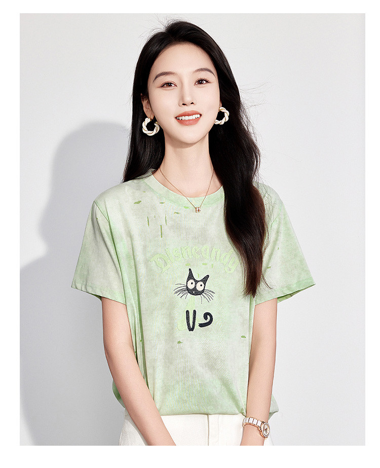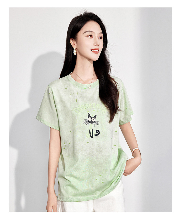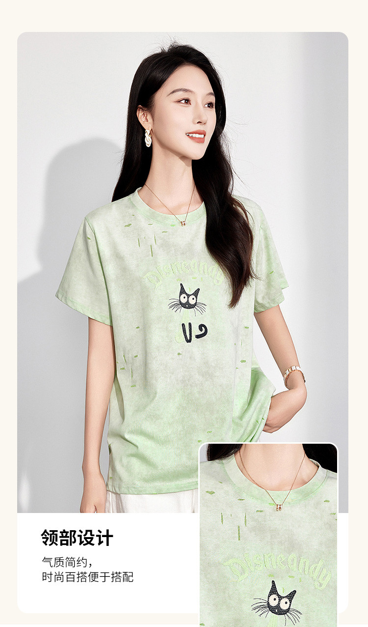 25夏季新款做旧氛围感减龄猫咪短袖女式韩系街头风百搭T恤上衣 601951