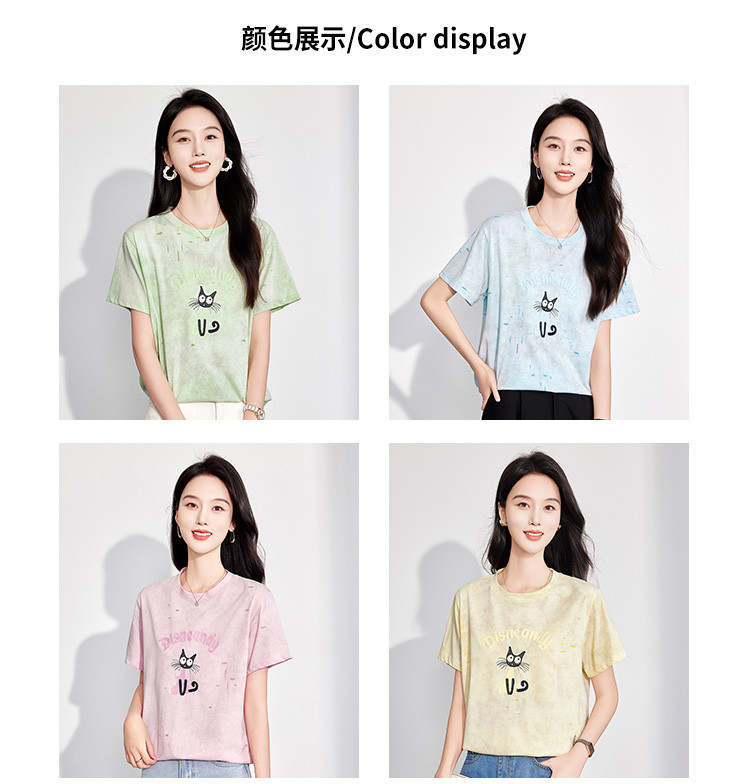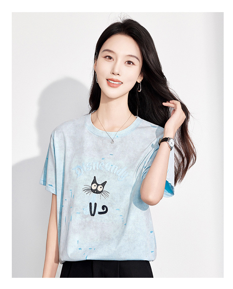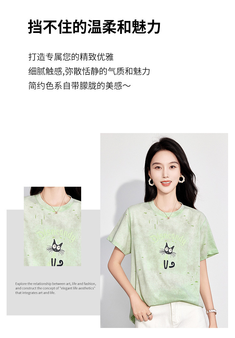 商品名称:25夏季新款做旧氛围感减龄猫咪短袖女式韩系街头风百搭T恤上衣 601951
