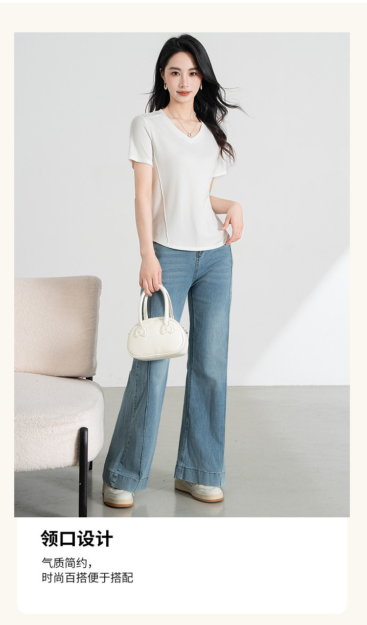 【三色可选】鱼骨收腰显瘦V领t恤女夏季2025气质正肩短袖t 310175