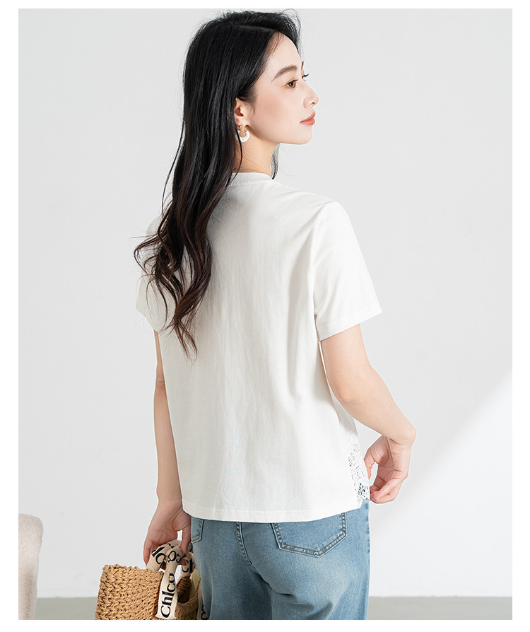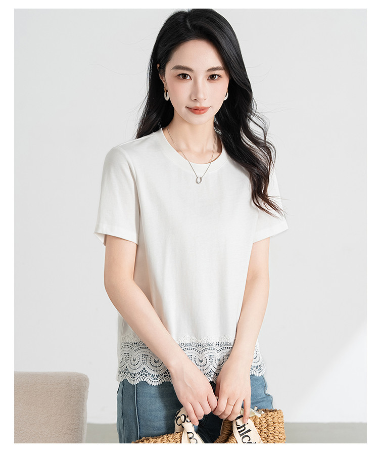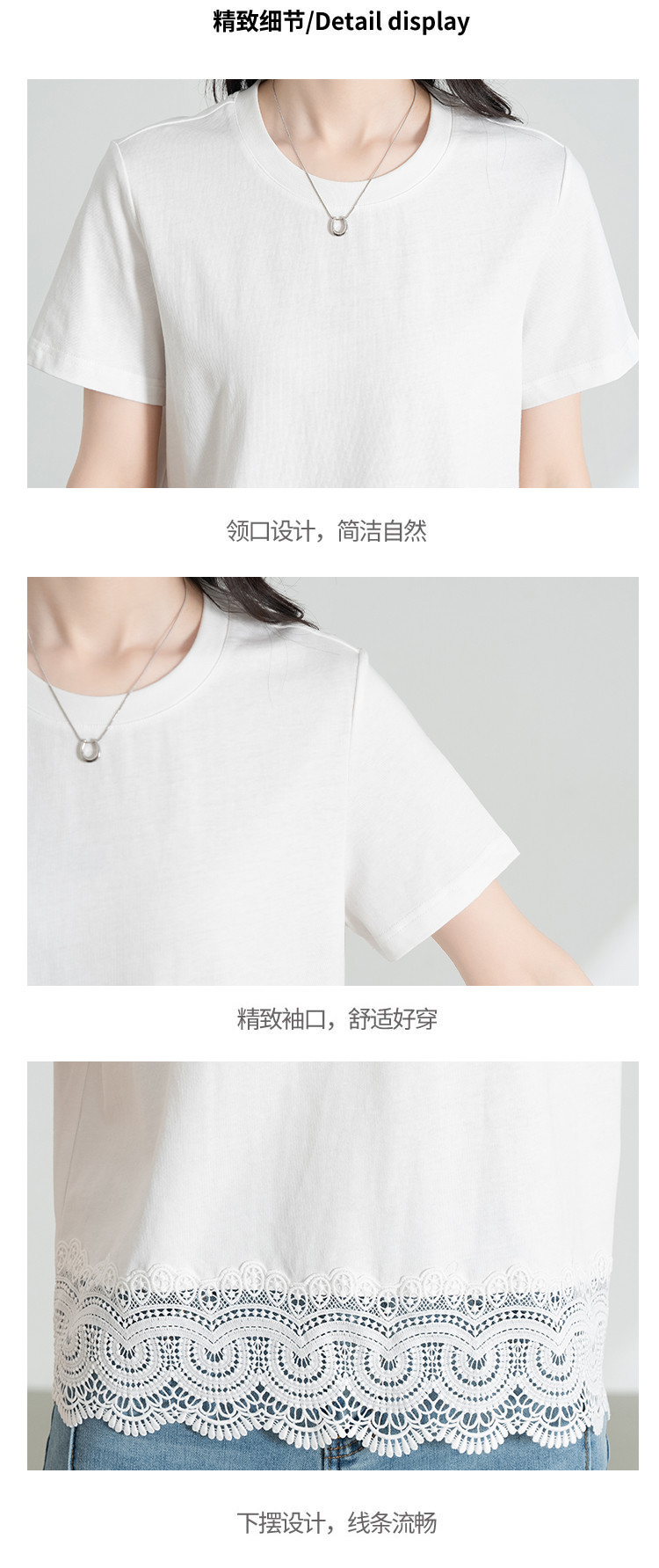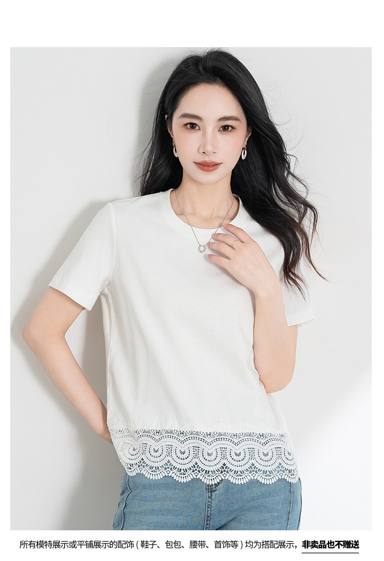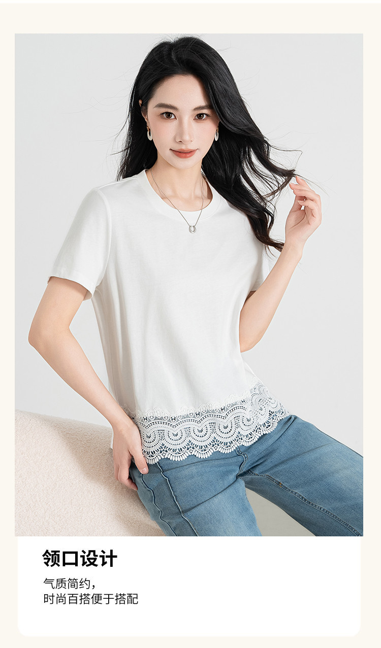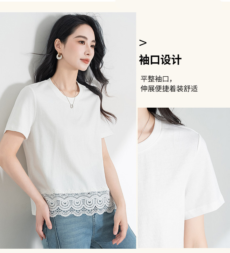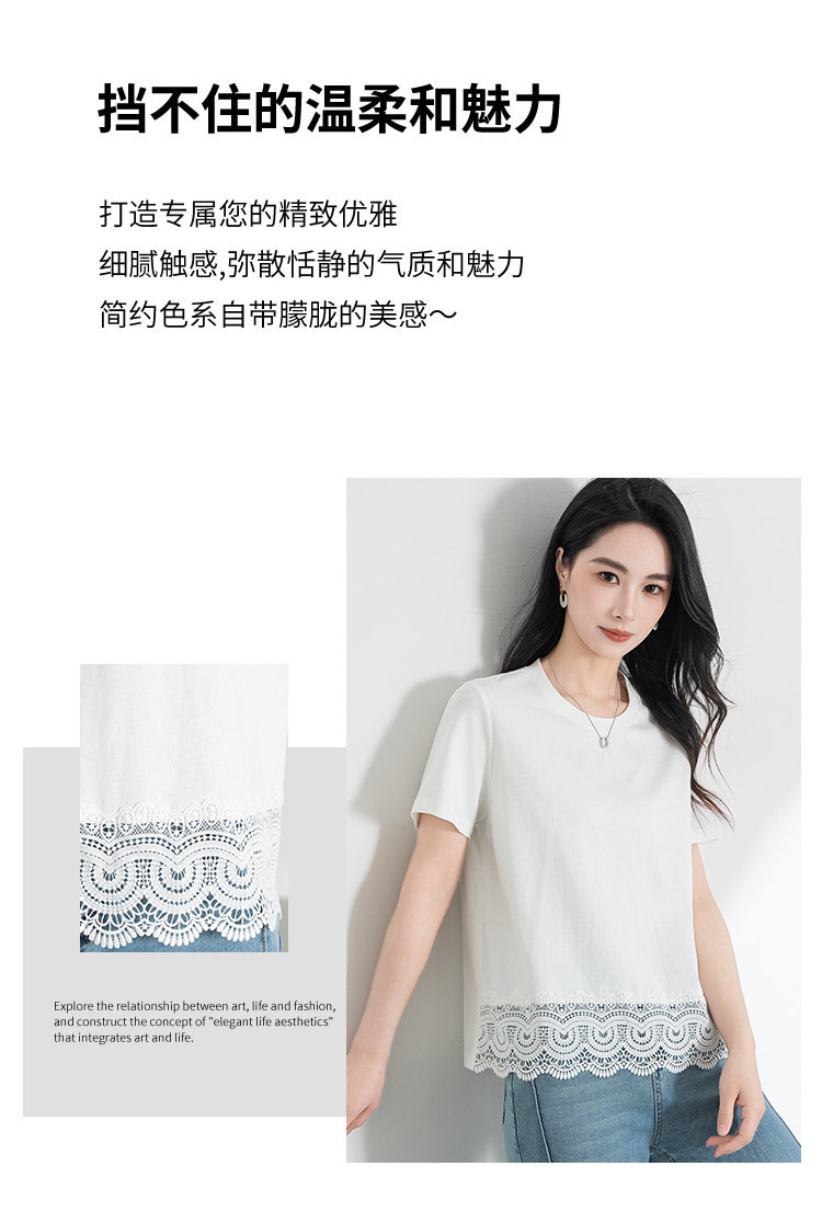 商品名称:【100% 棉】镂空蕾丝纯棉t恤女夏季2025拼接设计感短袖 297887
