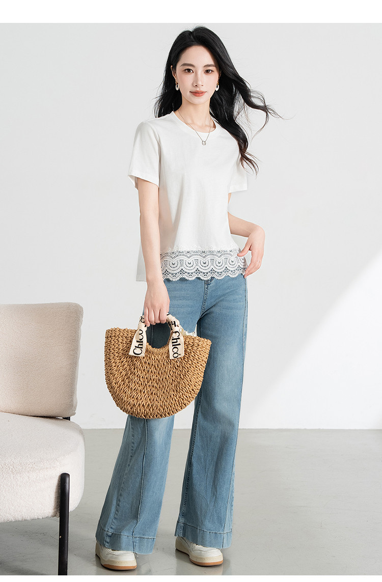 【100% 棉】镂空蕾丝纯棉t恤女夏季2025拼接设计感短袖 297887