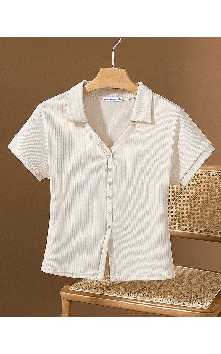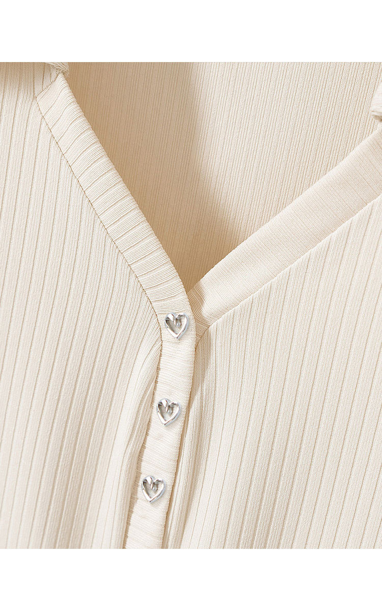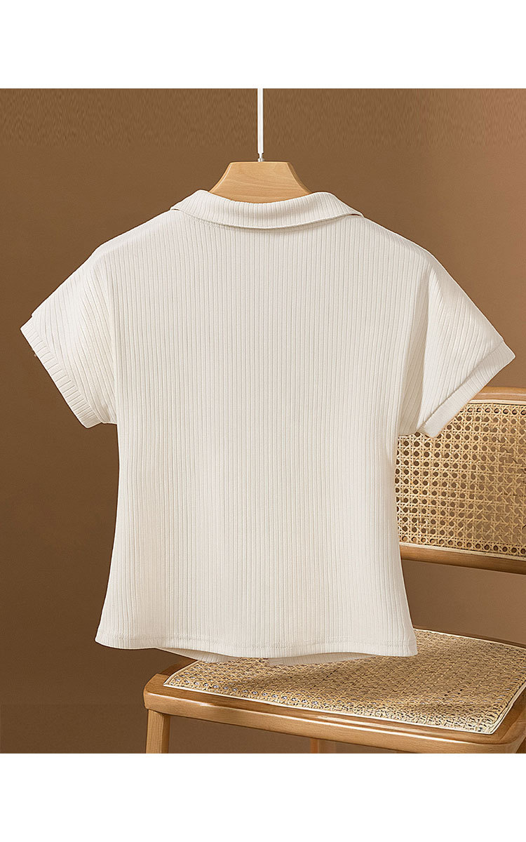 【优雅知性范】夏季polo领气质修身短袖T恤女爱心纽扣上衣 473951
