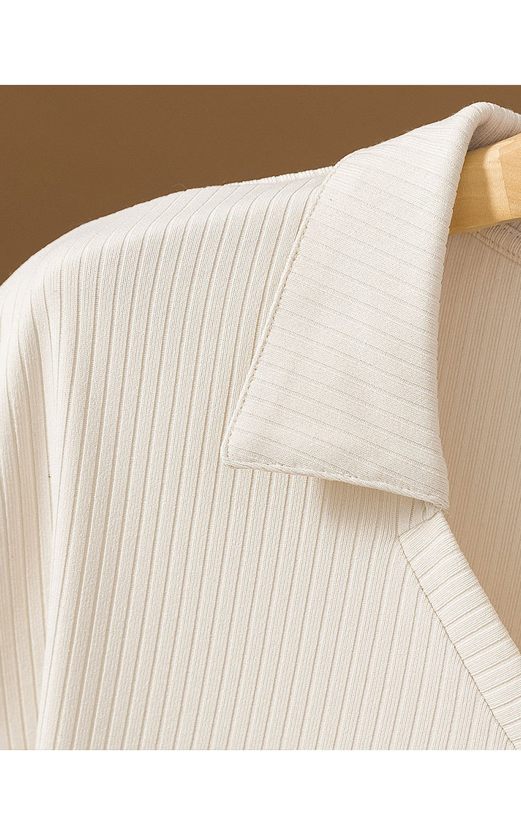 商品名称:【优雅知性范】夏季polo领气质修身短袖T恤女爱心纽扣上衣 473951