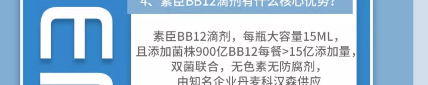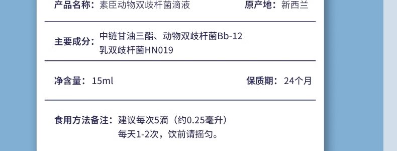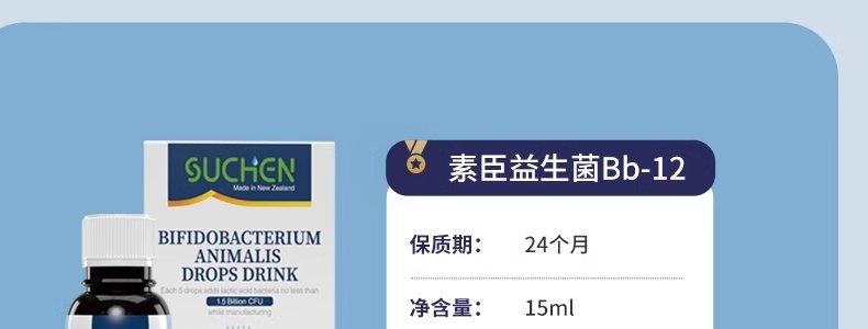 商品名称:素臣(SUCHEN)婴幼儿动物双岐杆菌Bb-12益生菌滴剂 15ml