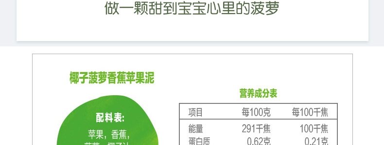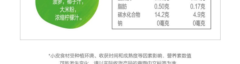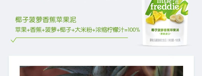 商品名称:英国 小皮(Little Freddie)果泥 椰子菠萝香蕉苹果泥 100g*8袋 送辅食勺