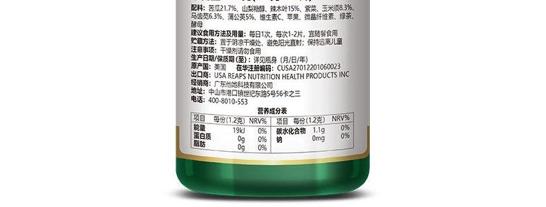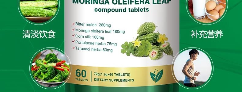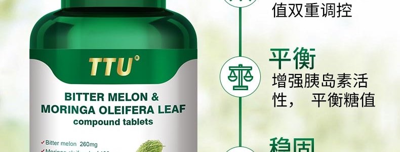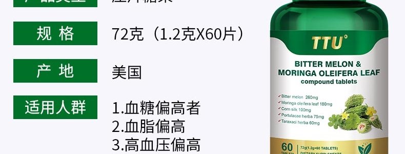 商品名称:美国 TTU 苦瓜素辣木叶复合片 60粒/瓶