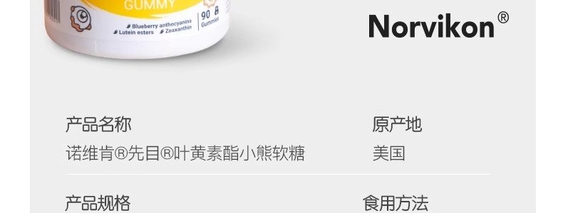 商品名称:美国 诺维肯(Norvikon)先目叶黄素酯小熊软糖 90粒