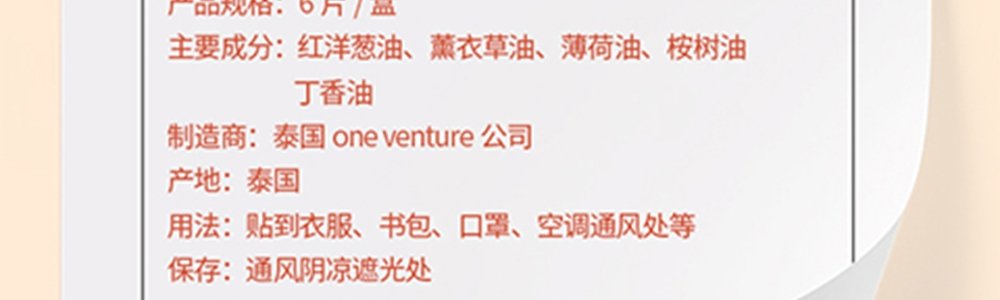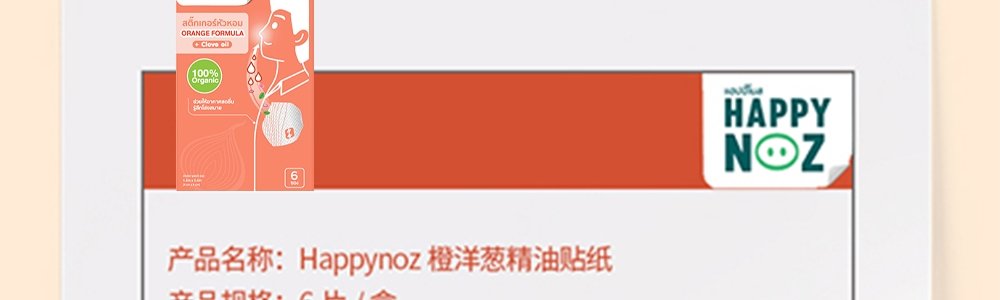 商品名称:泰国 HAPPYNOZ 成人款橙洋葱精油贴纸 丁香味 6片装