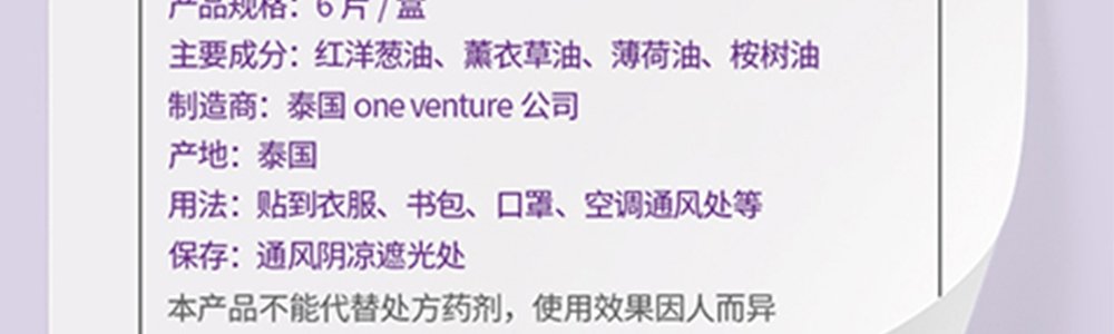 商品名称:泰国 HAPPYNOZ 成人款紫洋葱精油贴纸 薰衣草味 6片装
