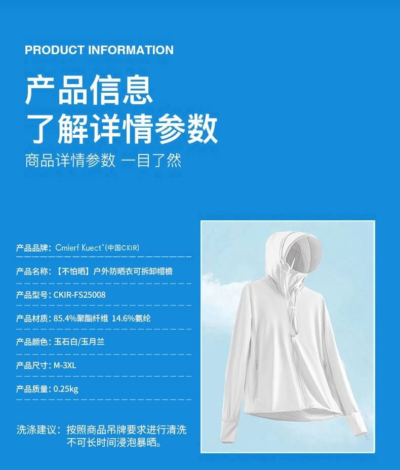 商品名称:Cmierf Kuect 户外防晒衣可拆卸帽檐 CKIR-FS250