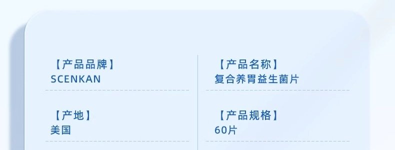 美国 圣斯康(scenkan)复合养胃益生菌片 60粒/瓶