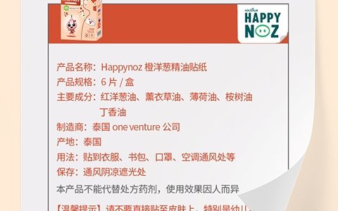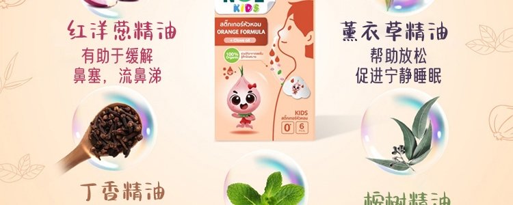 商品名称:泰国 HAPPYNOZ 儿童橙洋葱精油贴纸 丁香味 6片装