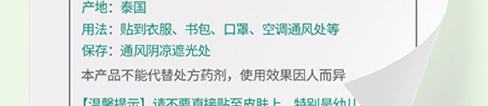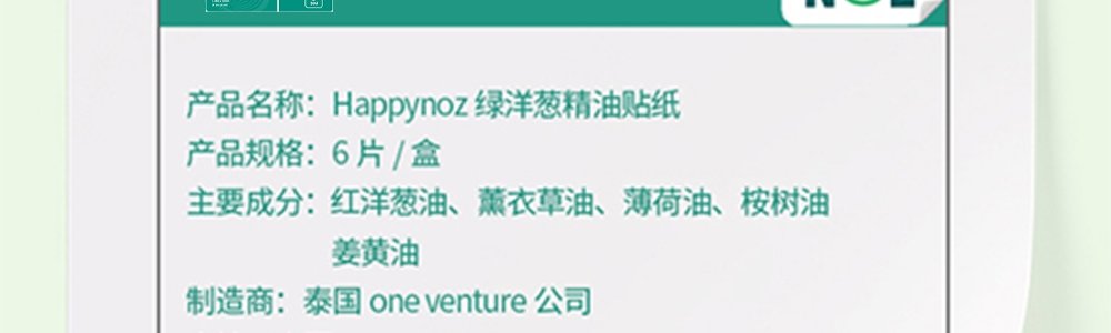 商品名称:泰国 HAPPYNOZ 成人款绿洋葱精油贴纸 姜黄味 6片装