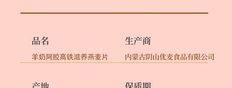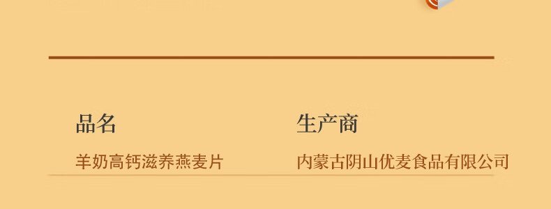 商品名称:阴山优麦 羊奶高钙营养燕麦片 560g(16小包)