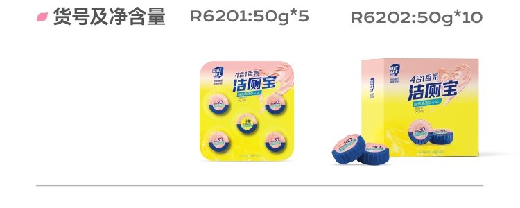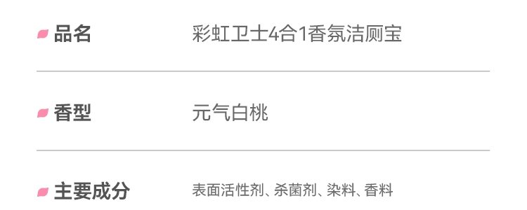 商品名称:彩虹卫士 4合1香氛洁厕宝 元气白桃味(50g*5个)*3盒