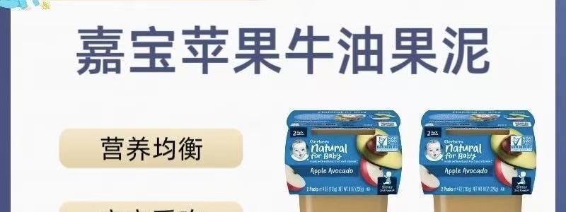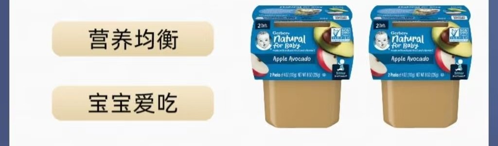 商品名称:美国 嘉宝(Gerber)宝宝果泥 苹果牛油果果泥 226g