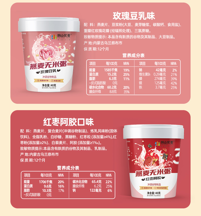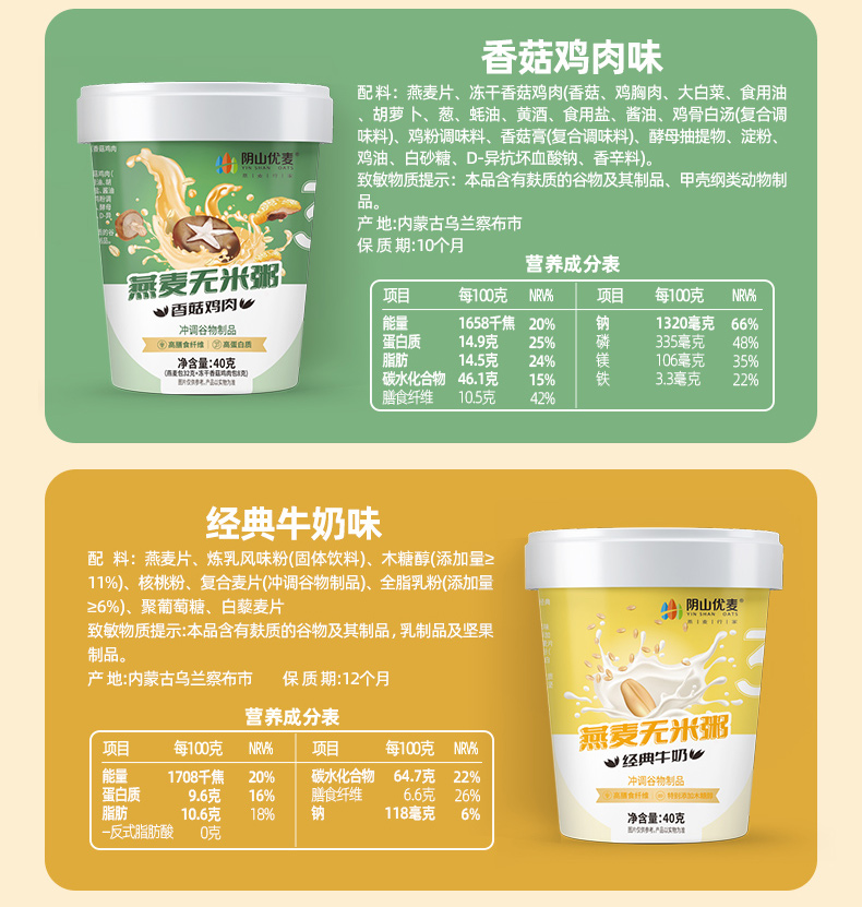 商品名称:YIN SHAN OATS/阴山优麦无米粥礼盒320g